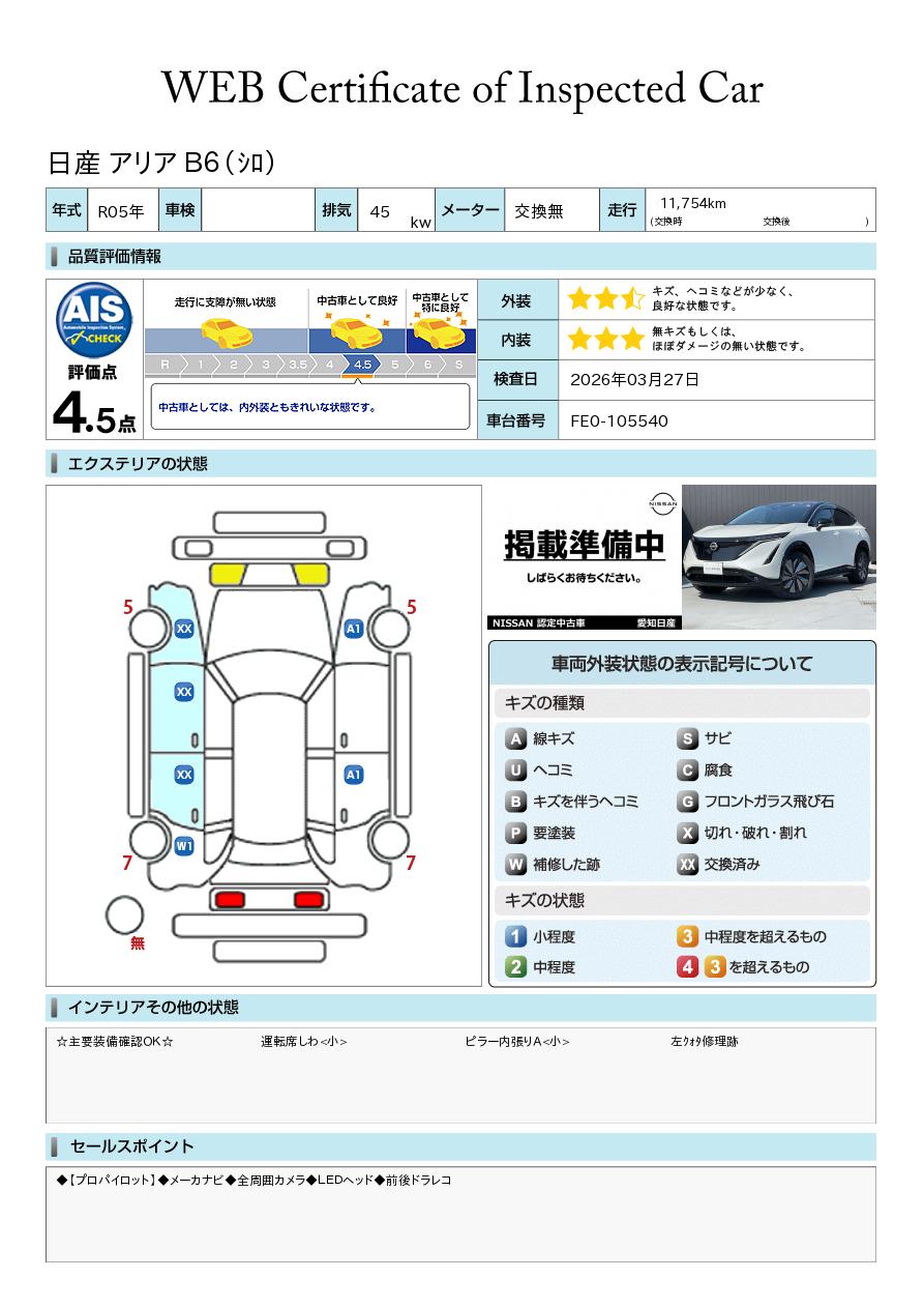 「車両状態証明書」は、査定協会監修のプロの検査員が公正かつ確かな基準で検査した”安心の証”です。