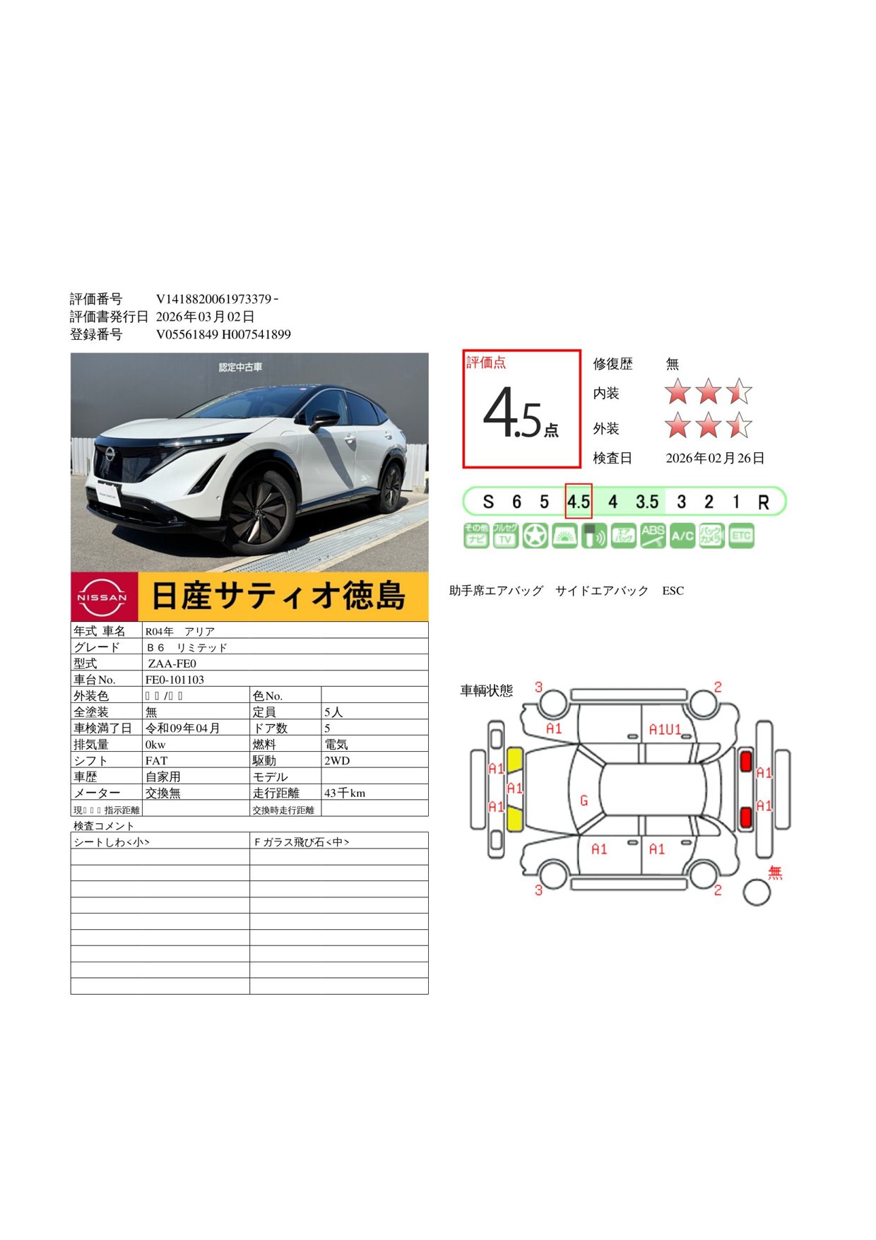 現状括弧書き内の年月まで車検有効期限が残っていますが、ご成約時に新しく車検を取り直します。なお取り直しの費用は車両価格に含まれています。