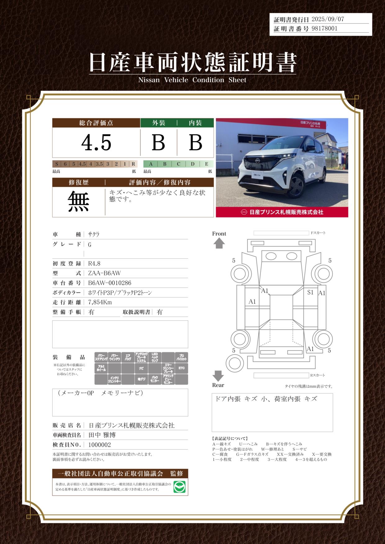 サクラ G 社有車アップ 純正ナビ プロパイロット