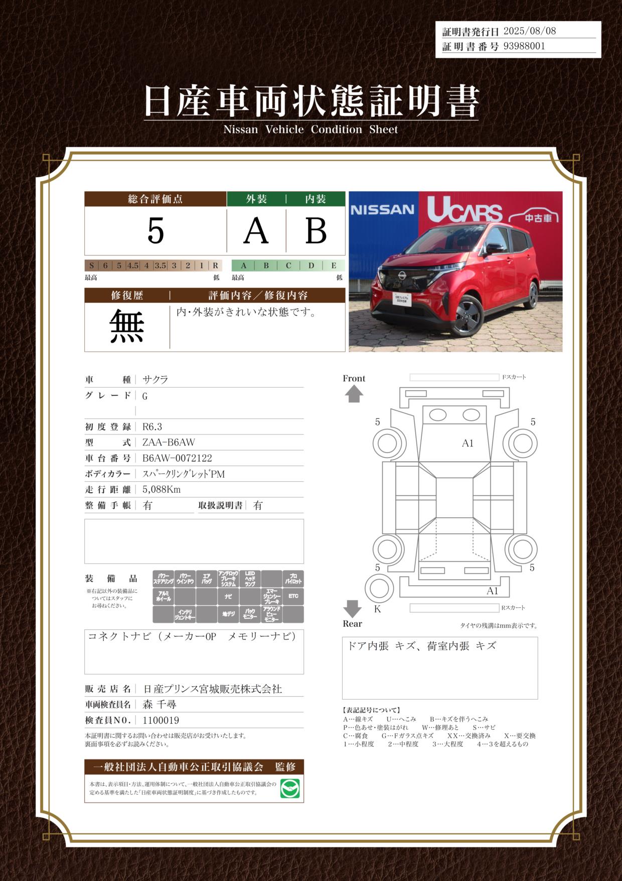 サクラ G 当社元試乗車 NissanConnect対応ナビ