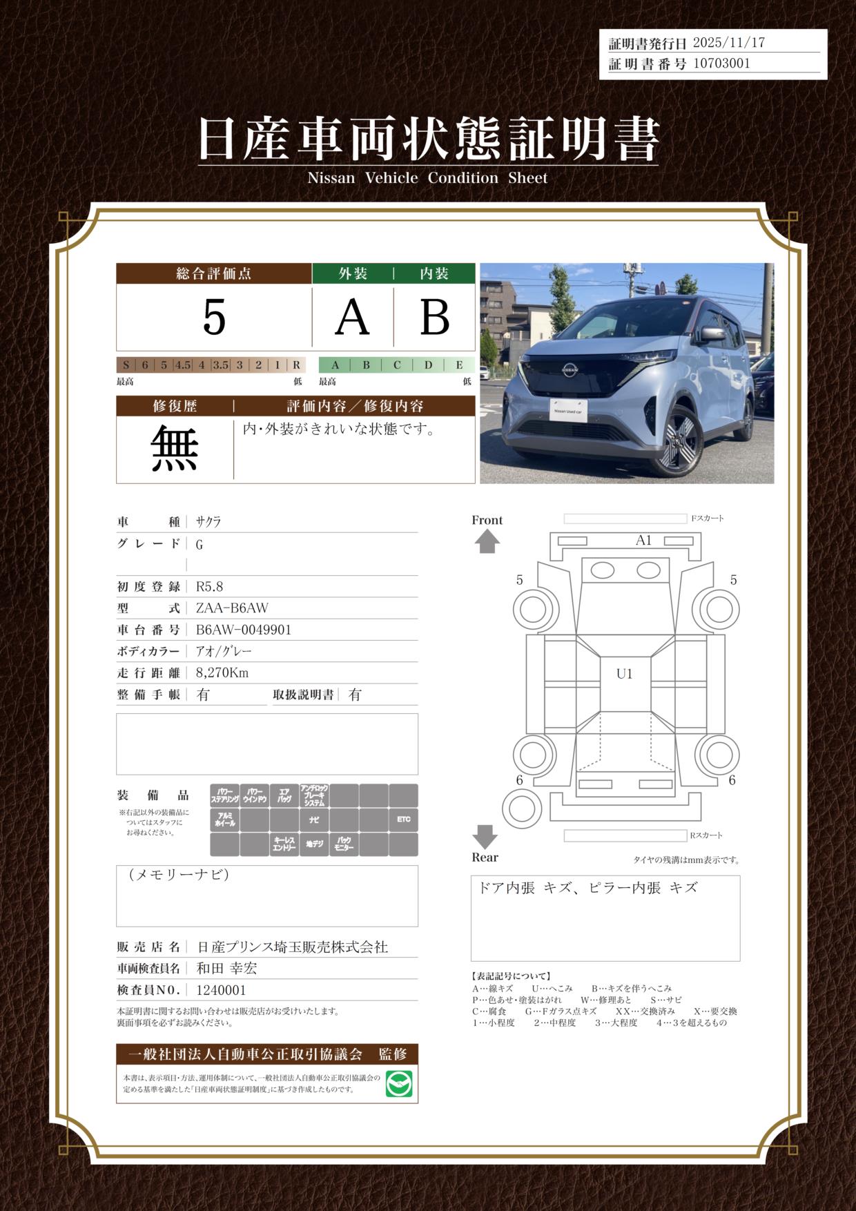現状車検切れの状態ですが、ご成約時に新しく車検を実施します。車検費用は車両価格に含まれています。