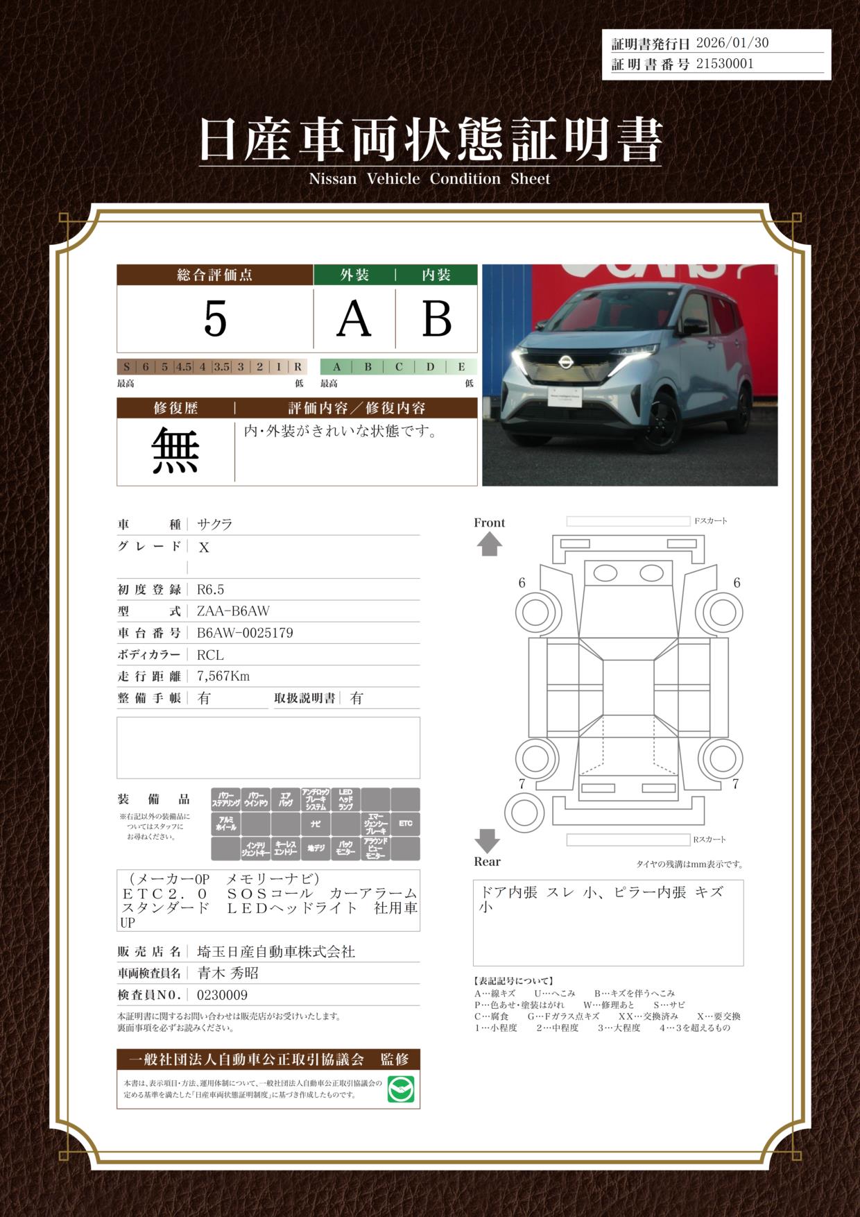 現状括弧書き内の年月まで車検有効期限が残っていますが、ご成約時に新しく車検を取り直します。なお取り直しの費用は車両価格に含まれています。