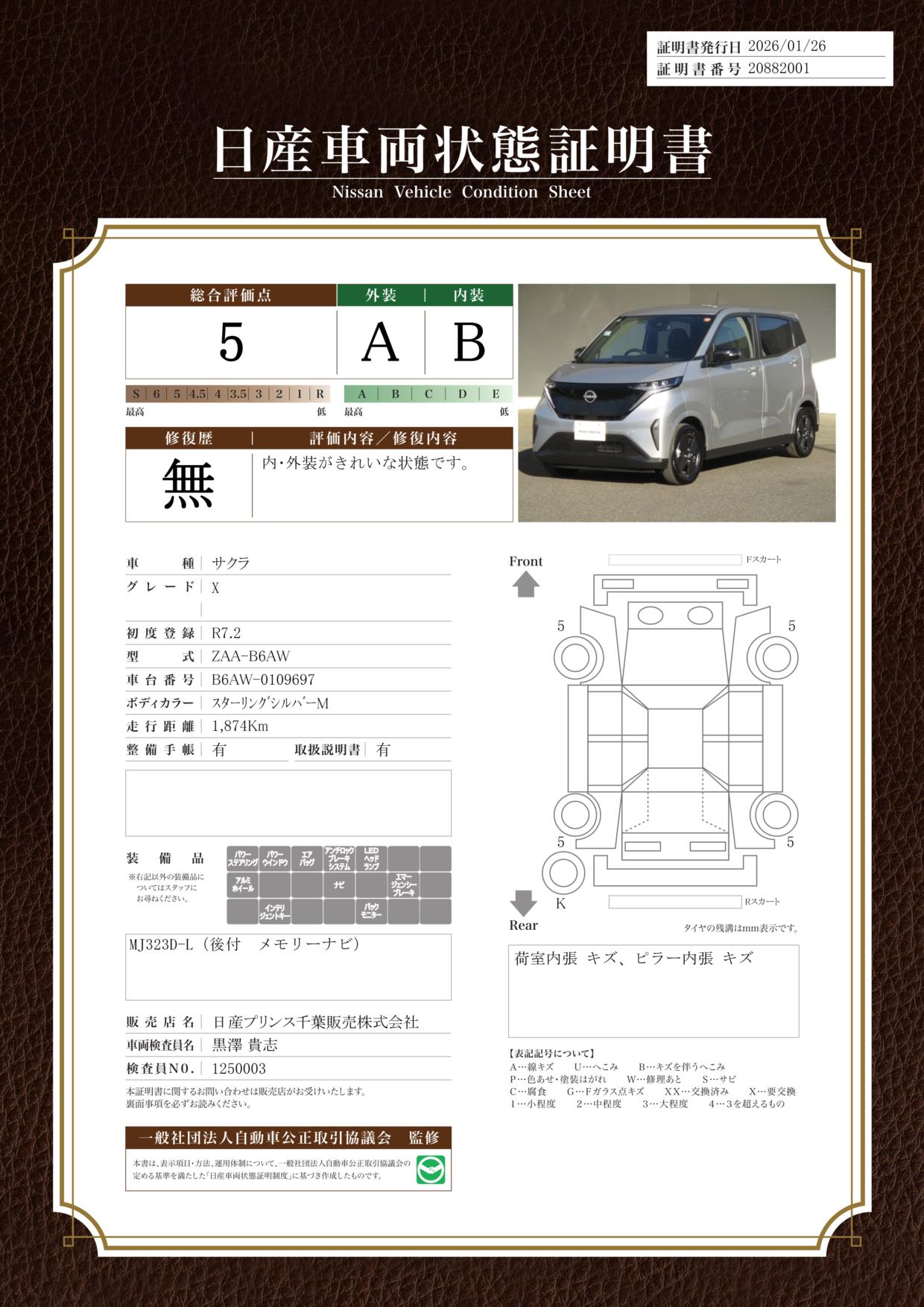 現状括弧書き内の年月まで車検有効期限が残っていますが、ご成約時に新しく車検を取り直します。なお取り直しの費用は車両価格に含まれています。