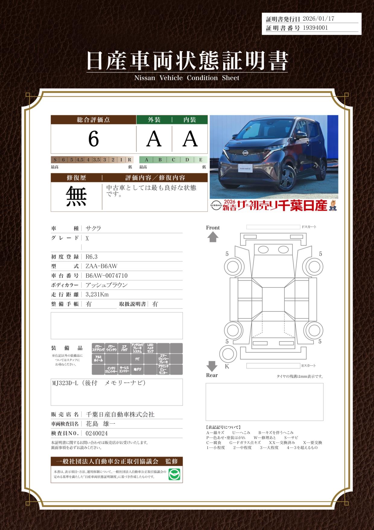 評価機関 : 日産車両状態証明
