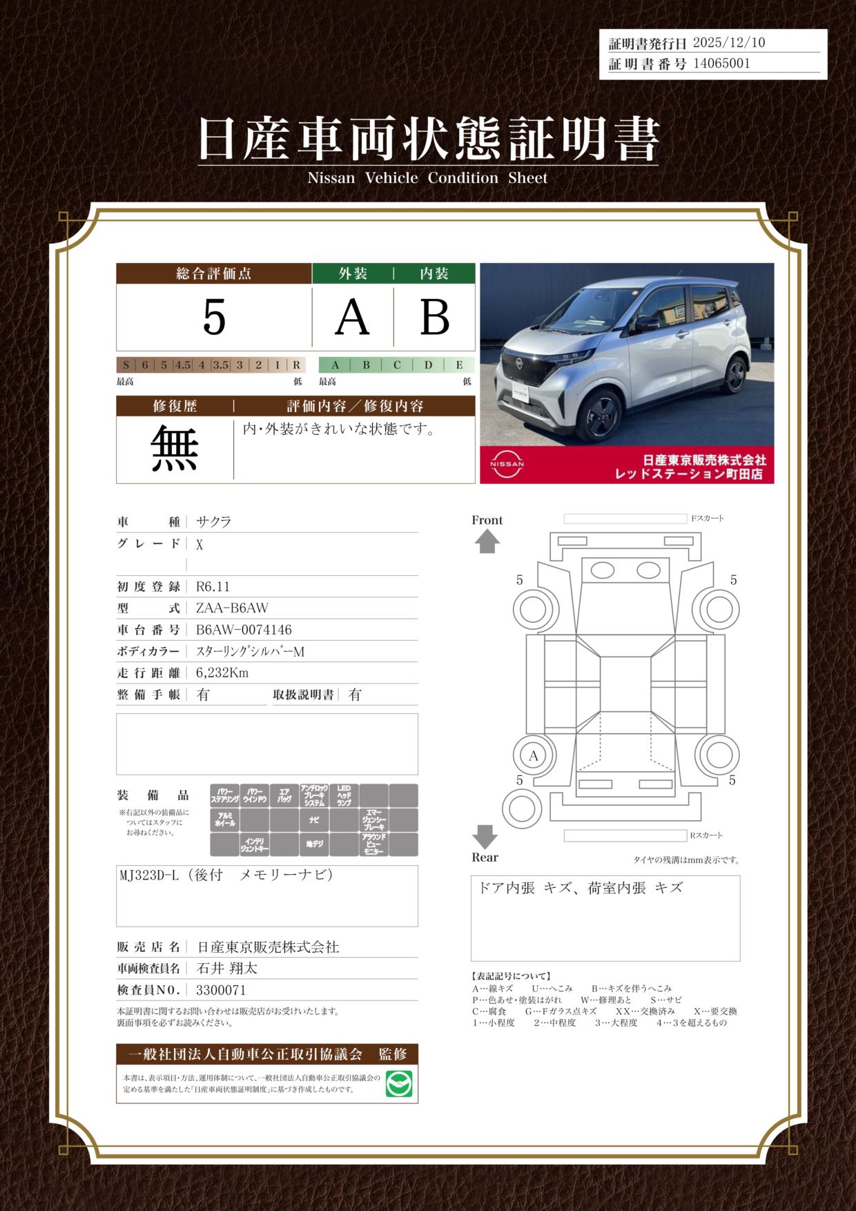 現状車検切れの状態ですが、ご成約時に新しく車検を実施します。車検費用は車両価格に含まれています。