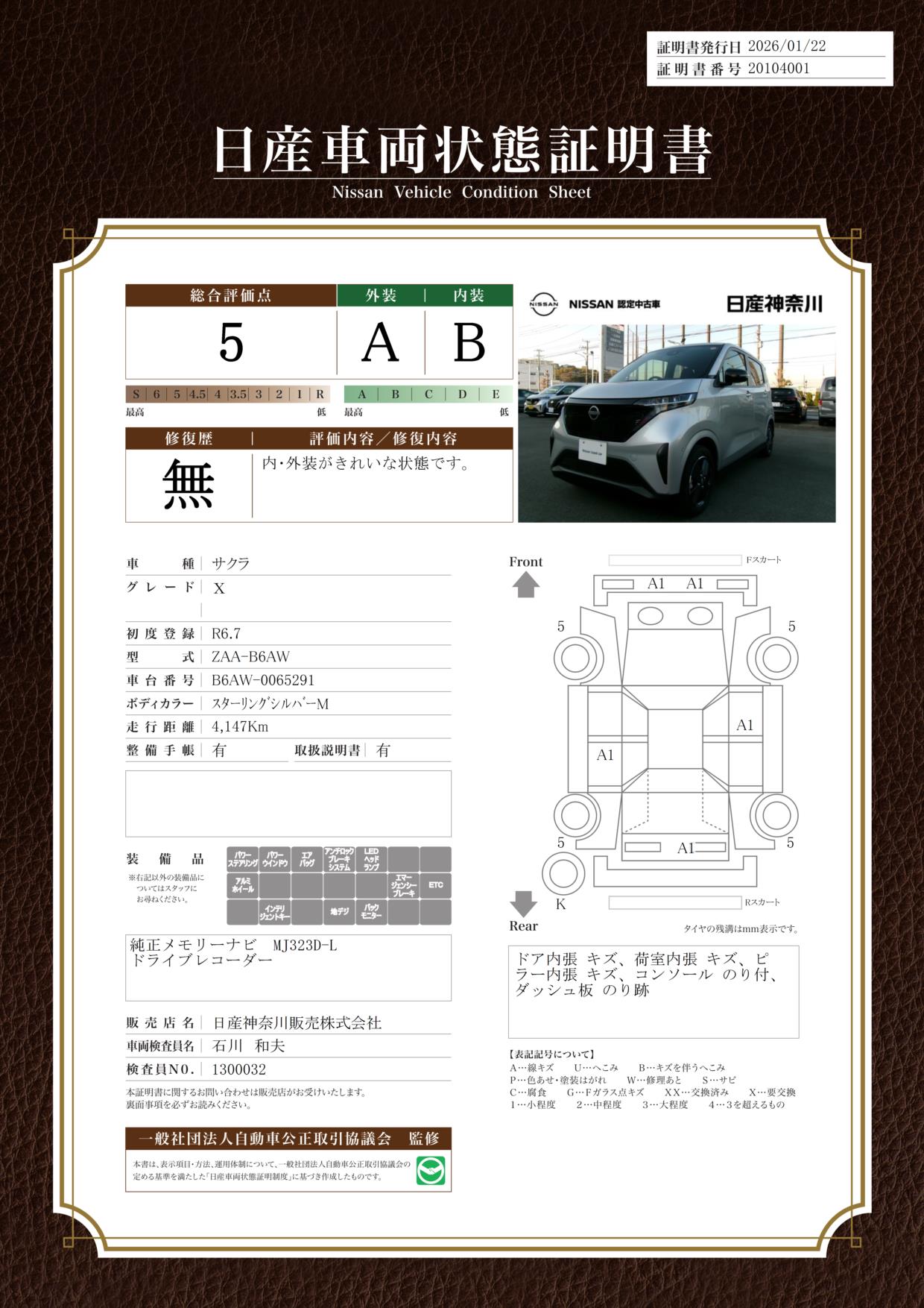 サクラ X 試乗車 ナビ&AVM・ETC・ドラレコ