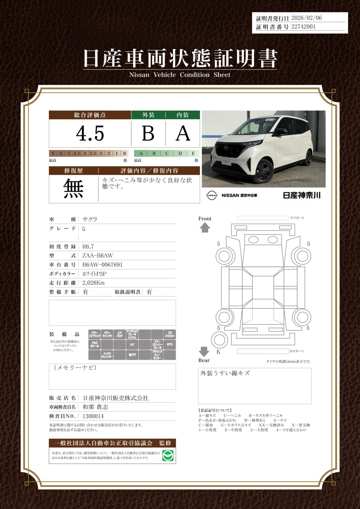 「車両状態証明書」は、査定協会監修のプロの検査員が公正かつ確かな基準で検査した”安心の証”です。