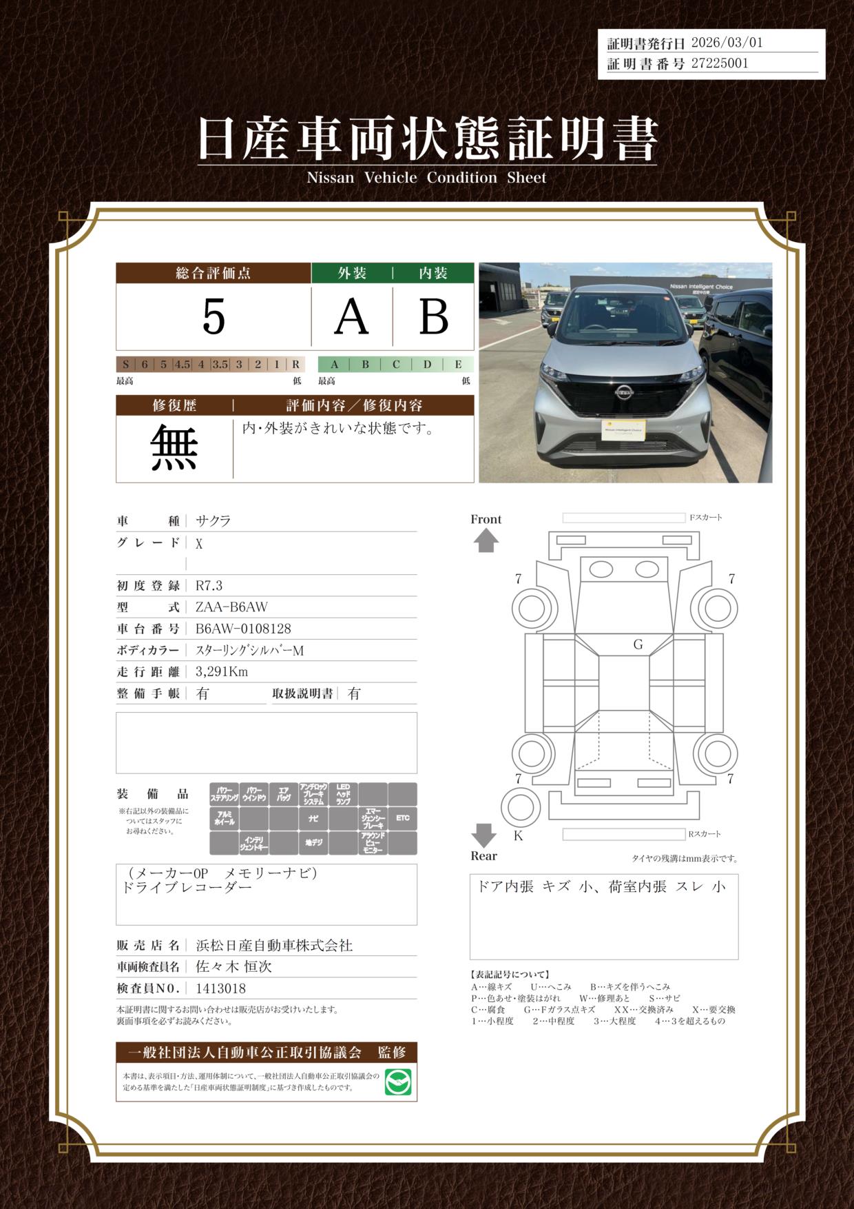 サクラ X 日産純正ナビ ドライブレコーダー ETC