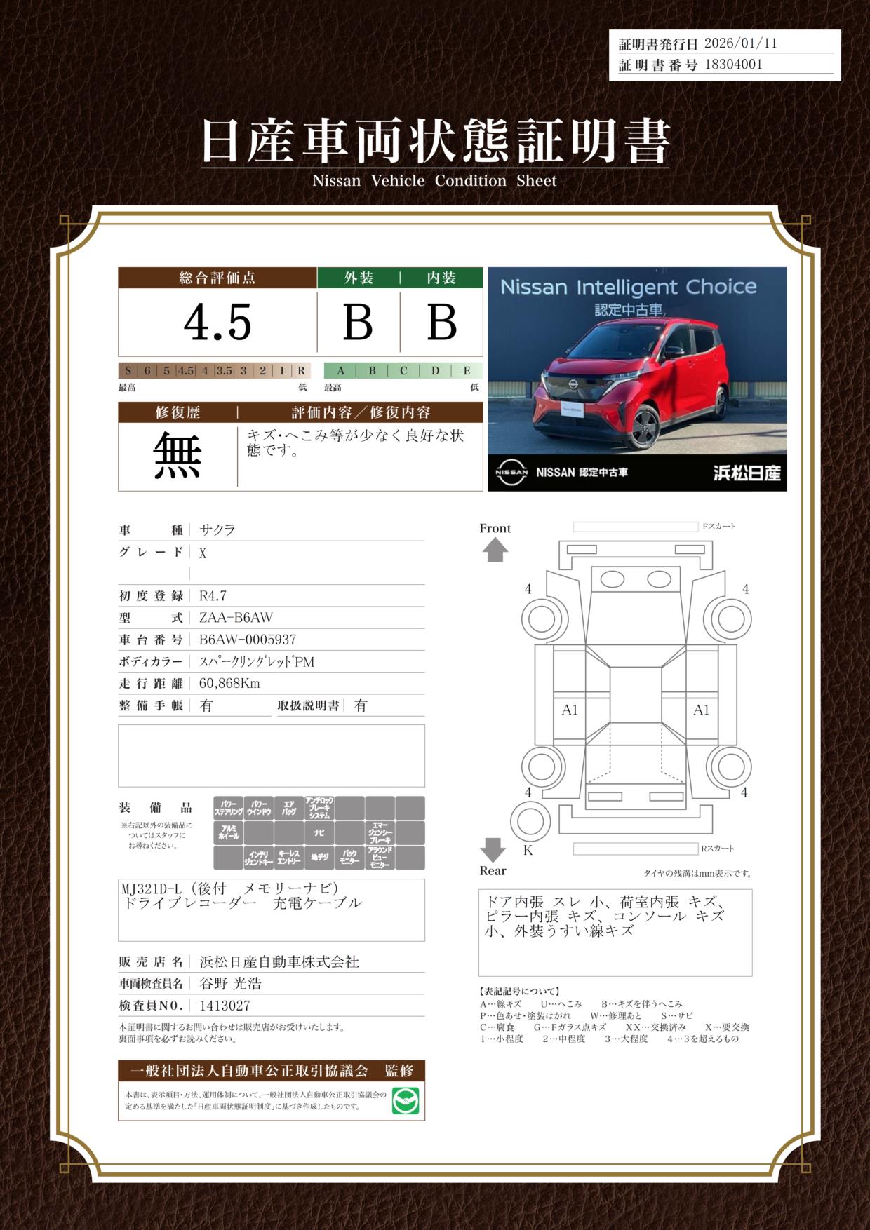 現状括弧書き内の年月まで車検有効期限が残っていますが、ご成約時に新しく車検を取り直します。なお取り直しの費用は車両価格に含まれています。