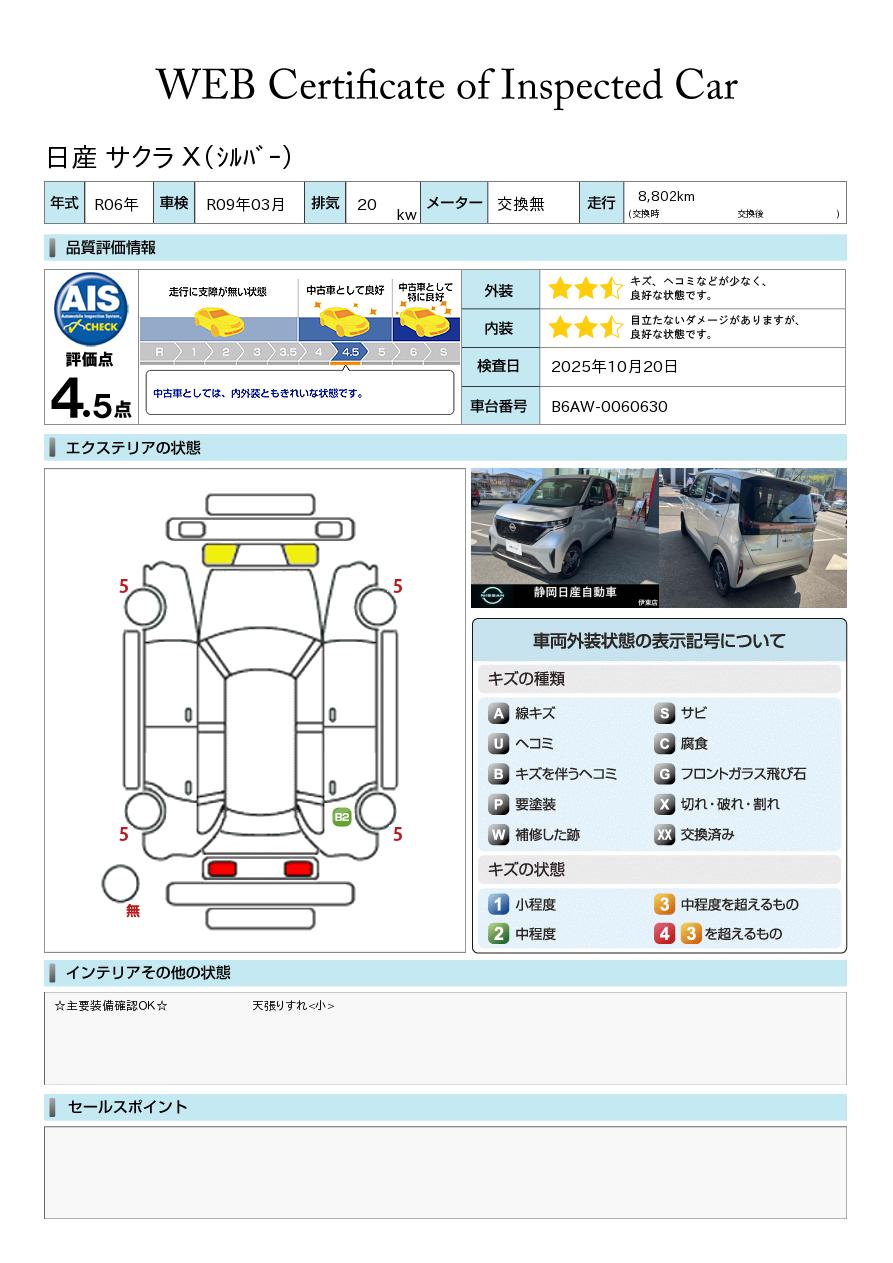 サクラ X AVM ナビ 試乗車