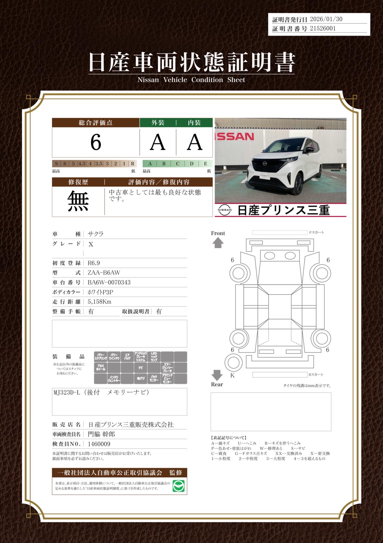 サクラ X 当社社有車 店頭販売限定車 メモリーナビ