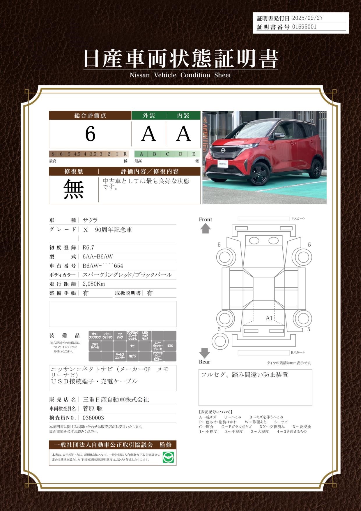 評価機関 : 日産車両状態証明