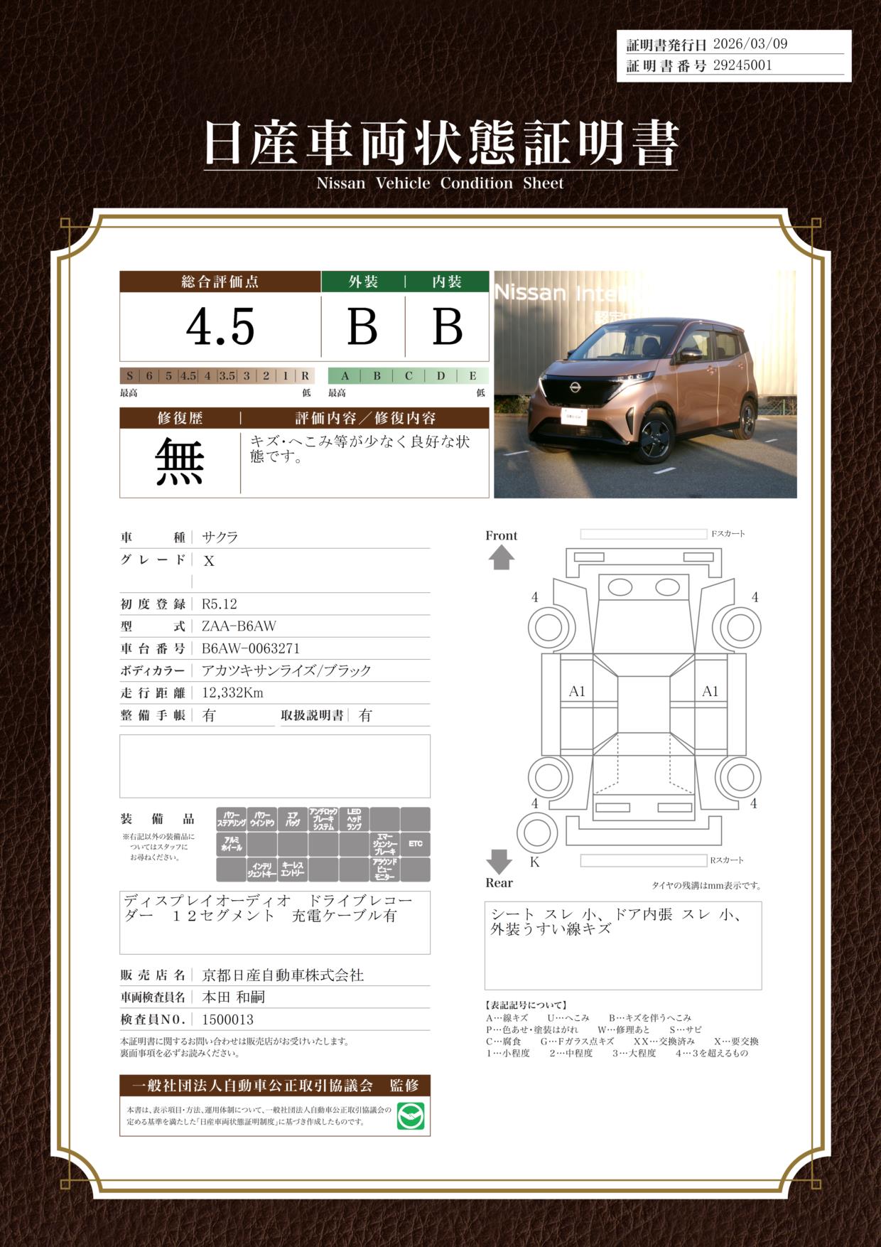 「車両状態証明書」は、査定協会監修のプロの検査員が公正かつ確かな基準で検査した”安心の証”です。