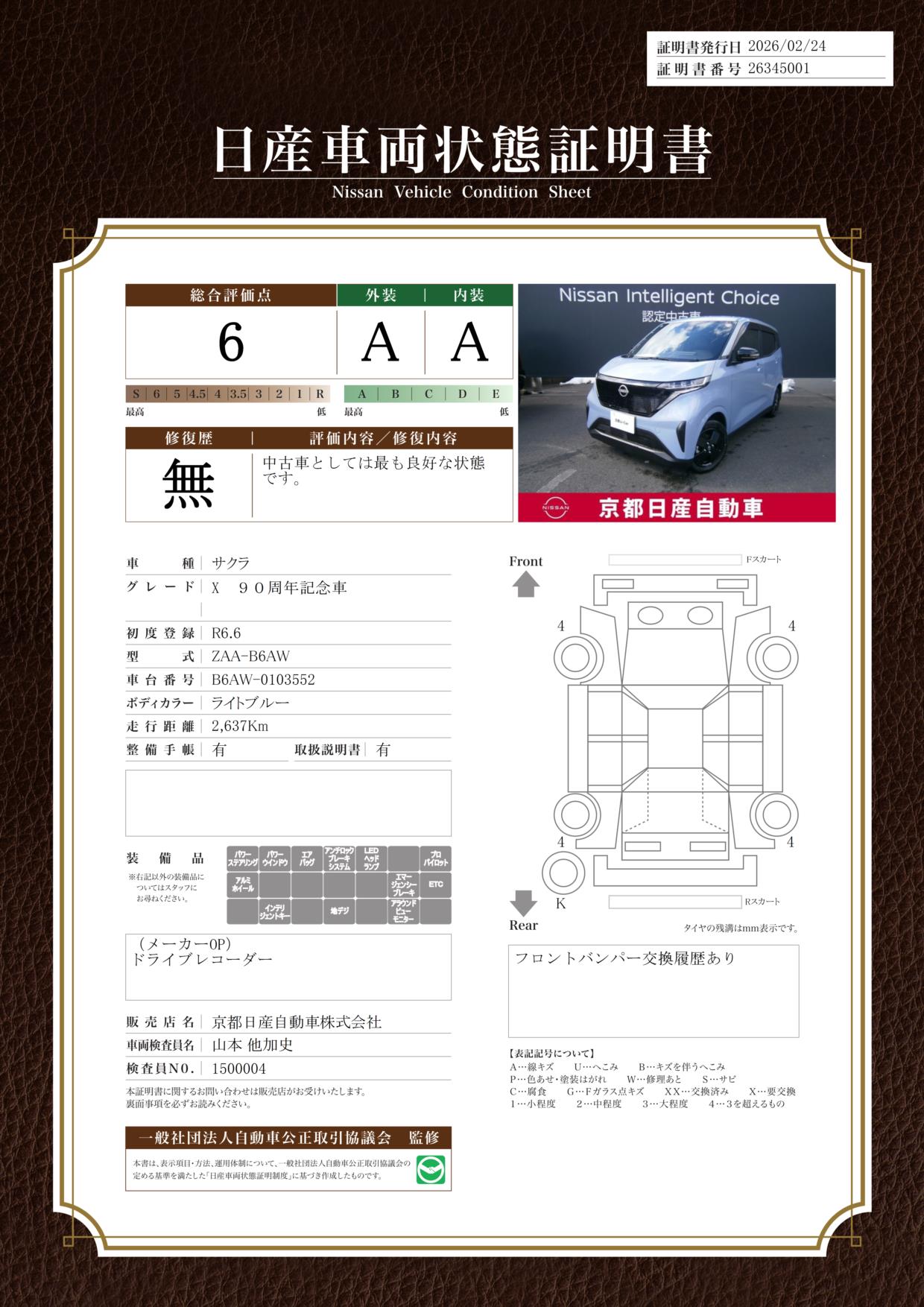 購入から2年間、走行距離無制限で保証。