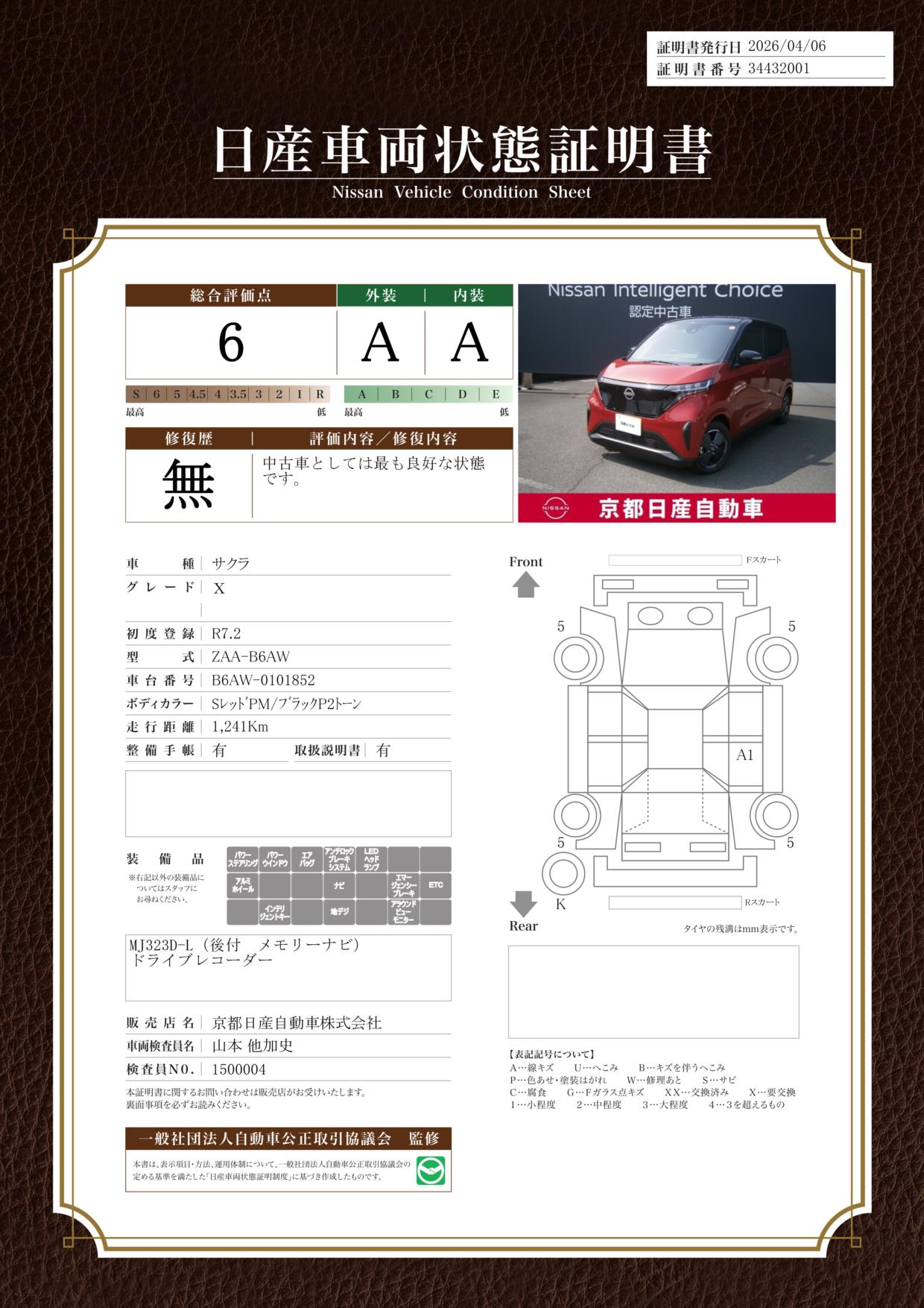 「車両状態証明書」は、査定協会監修のプロの検査員が公正かつ確かな基準で検査した”安心の証”です。