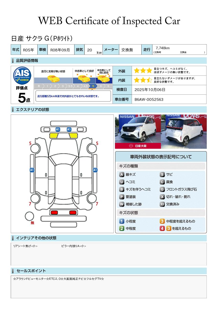 現状括弧書き内の年月まで車検有効期限が残っていますが、ご成約時に新しく車検を取り直します。なお取り直しの費用は車両価格に含まれています。