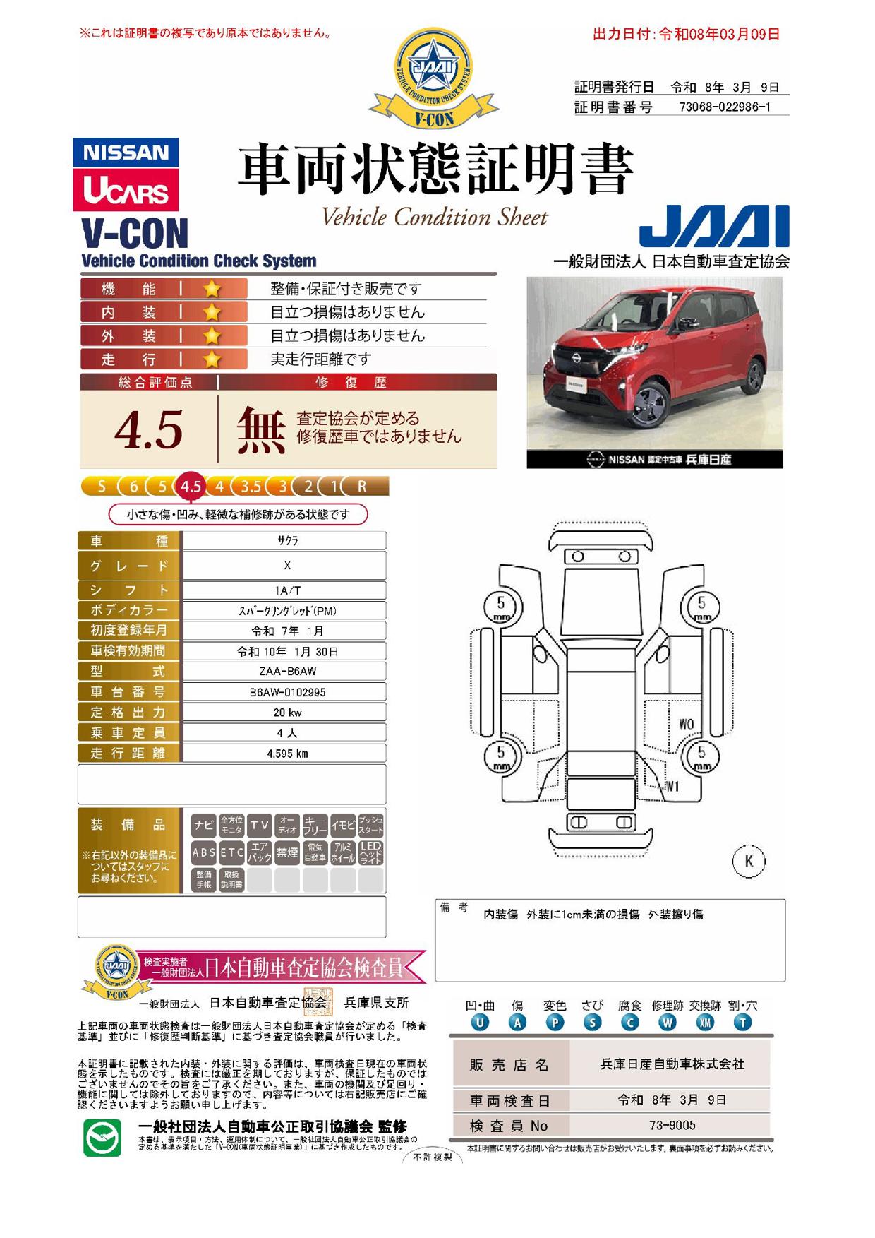 「車両状態証明書」は、査定協会監修のプロの検査員が公正かつ確かな基準で検査した”安心の証”です。