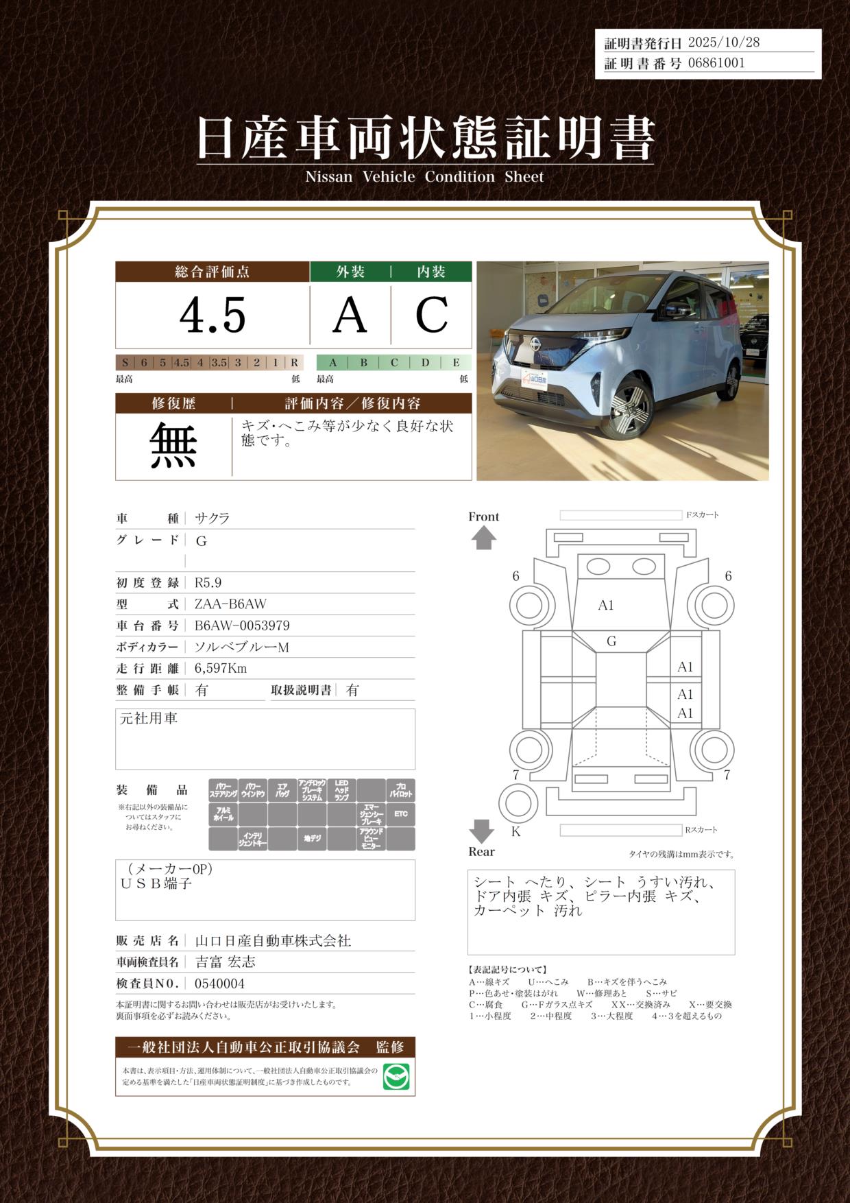 サクラ X 試乗車 禁煙車 フルセグメント 20kWh