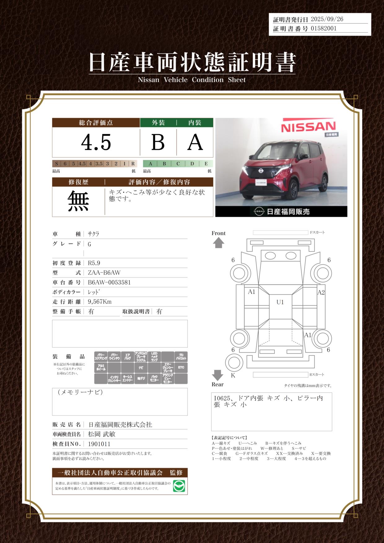 ニッサン サクラ G 当社試乗車UP メーカーナビ インテリキーアラウンドビューモニター 駐車場での車庫入れや狭い道路での走行にカメラで確認が出来るので安心です。