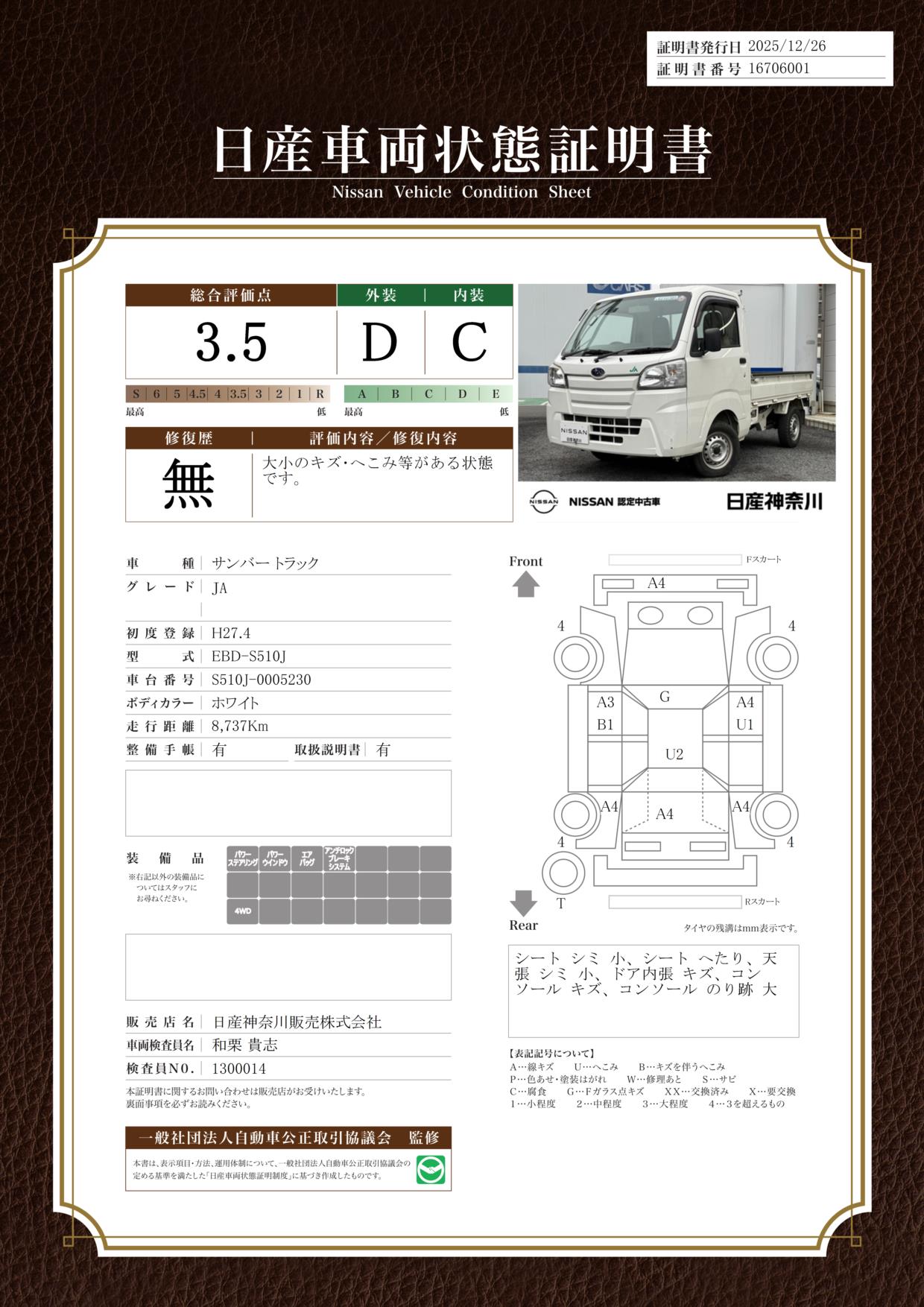 走行少ないサンバートラックが入荷しました!他メーカー車両の為、保証無、内外装現状販売となります旨、ご留意下さい。納車前に車検整備して納車となります。是非、ご検討下さい。