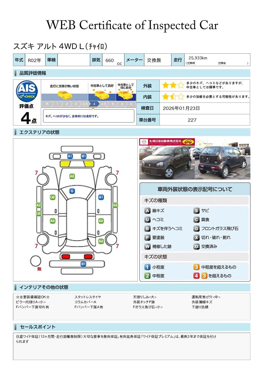 現状括弧書き内の年月まで車検有効期限が残っていますが、ご成約時に新しく車検を取り直します。なお取り直しの費用は車両価格に含まれています。