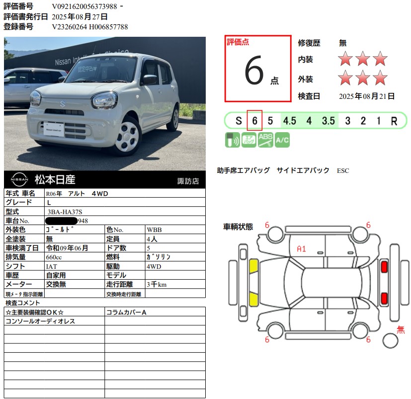 現状括弧書き内の年月まで車検有効期限が残っていますが、ご成約時に新しく車検を取り直します。なお取り直しの費用は車両価格に含まれています。