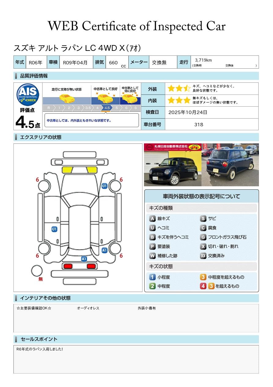 アルトラパン 660cc LC 660 X 4WD 衝突軽減ブレーキ 前席シートヒーター