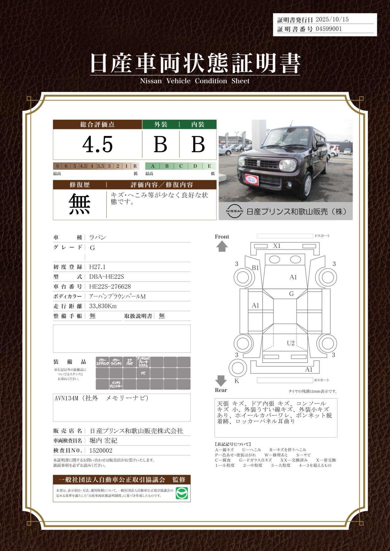 評価点イメージ : キズ・へこみ等が少なく良好な状態です。