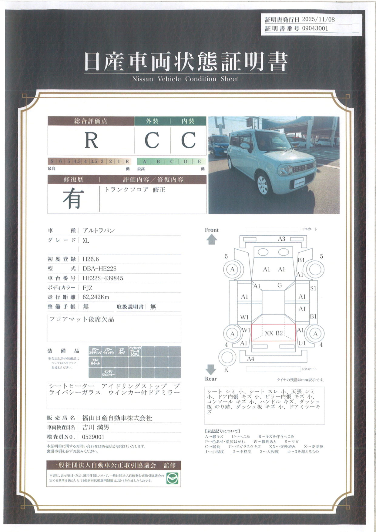 納車時に定期点検整備(費用は車両価格に含まれます。)