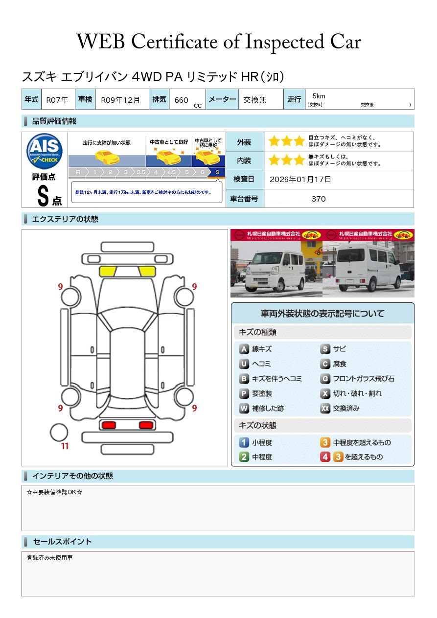 評価点イメージ : 12ヶ月未満、1万kmまで。新車をご検討中の方にもお勧めです。
