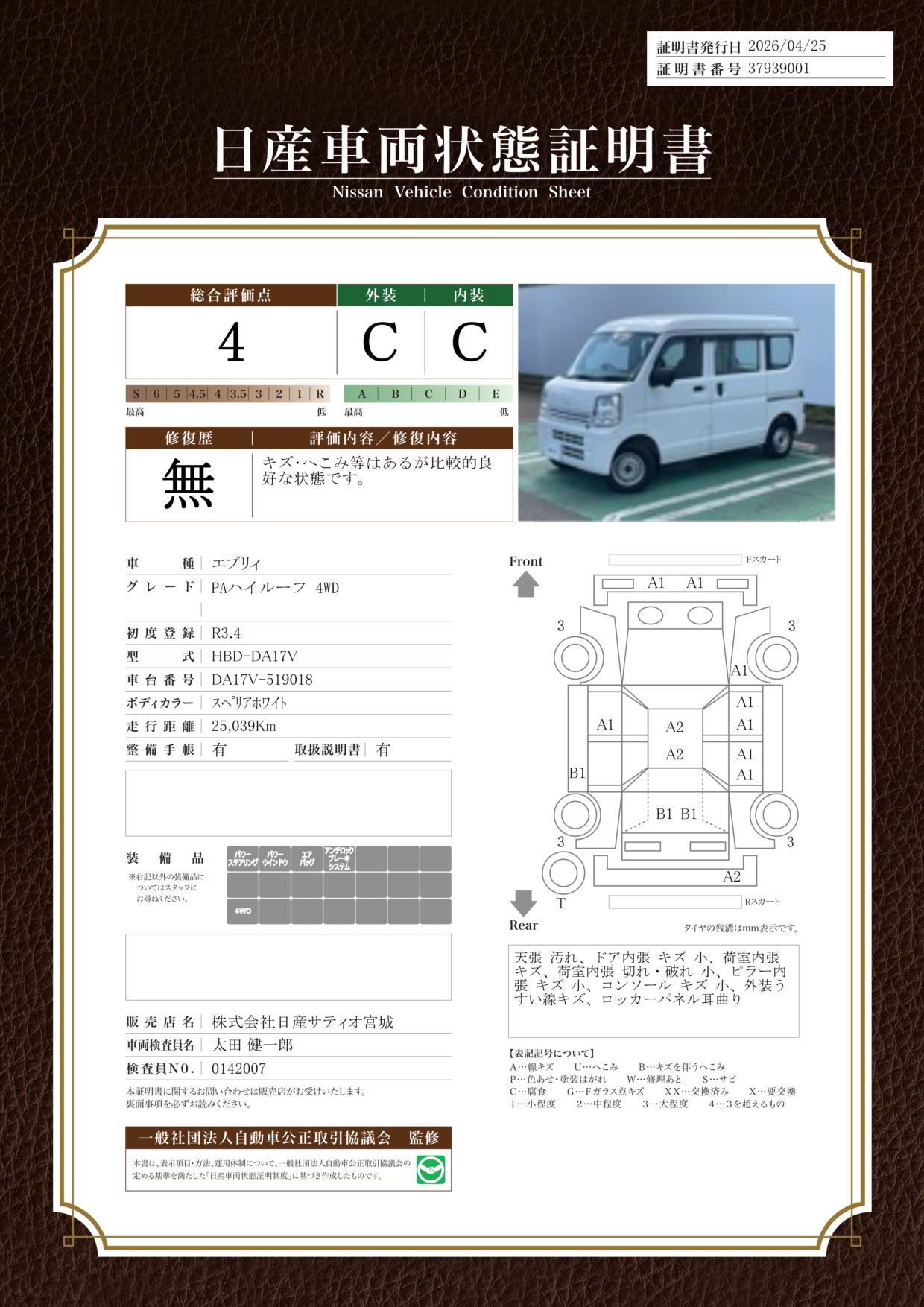 ■ワンオーナー■4WD■AM/FMラジオ■両側スライドドア■エアコン■パワステ★走行25000km!! ★使い勝手の良いエブリィバン4WD入庫してきました♪