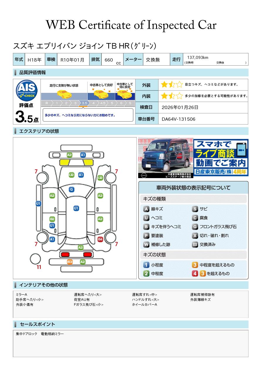 エブリイ 660cc 660 ジョイン ターボ ハイルーフ 集中ドアロック 電動格納ミラー