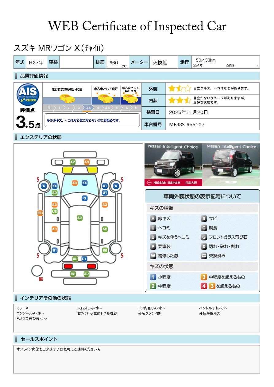 MRワゴン 660cc 660 X アイドリングストップ スマートキー