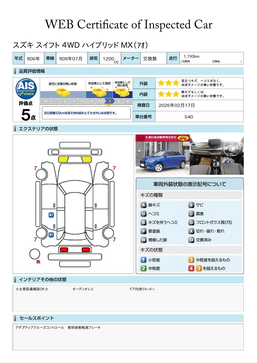 現状括弧書き内の年月まで車検有効期限が残っていますが、ご成約時に新しく車検を取り直します。なお取り直しの費用は車両価格に含まれています。
