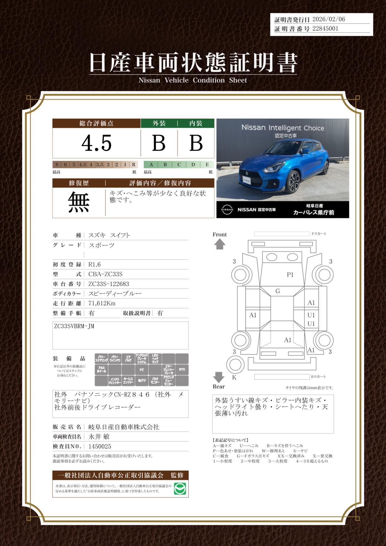 評価機関 : 日産車両状態証明