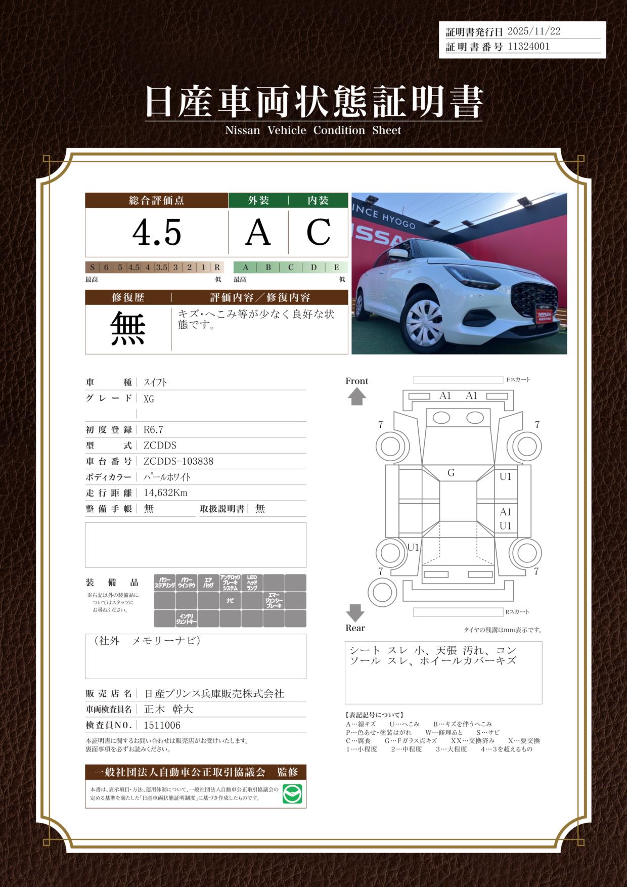 スイフト 1200cc 1.2 XG レンタUP・ハイビームアシスト・社外メモリ