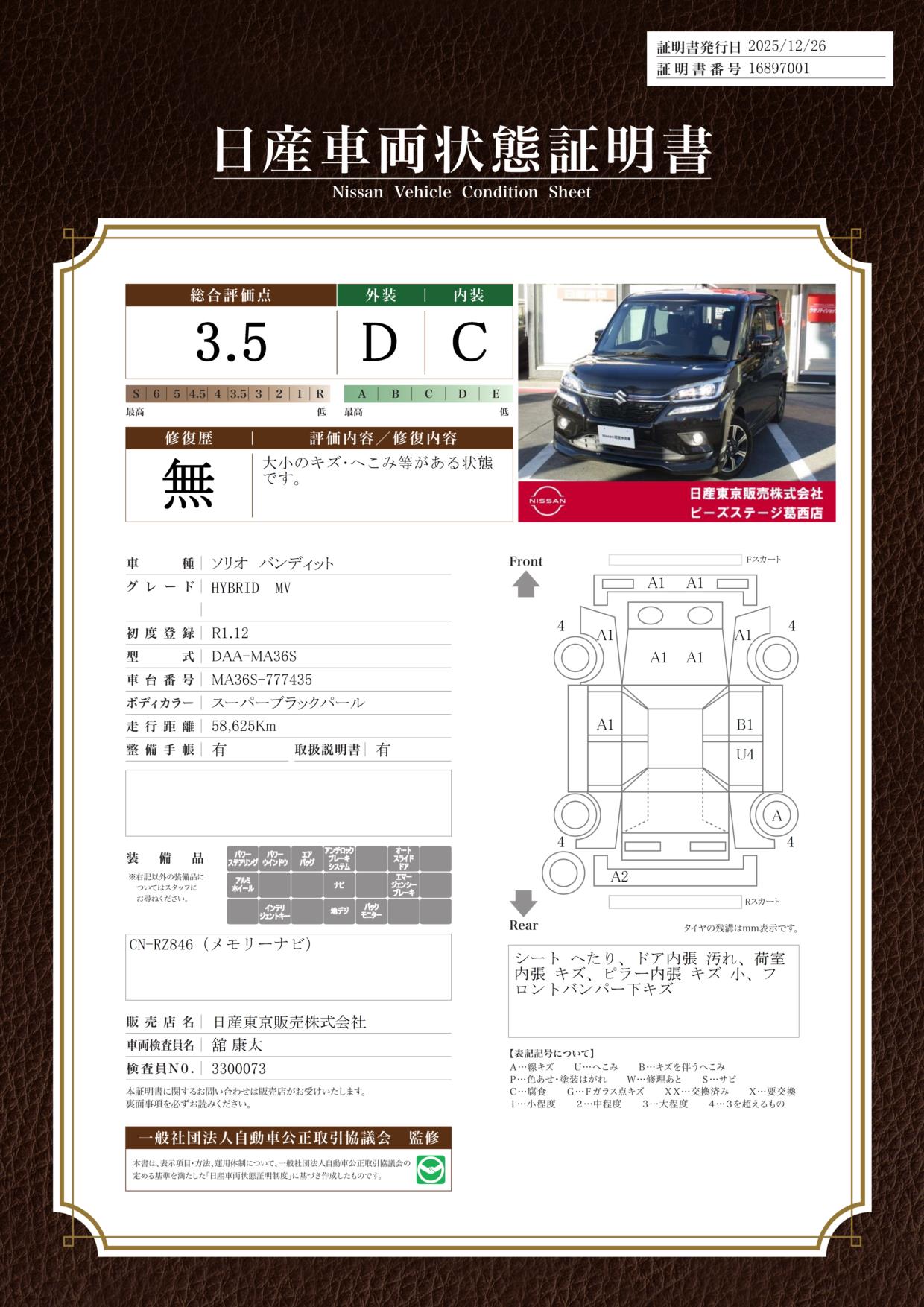現状括弧書き内の年月まで車検有効期限が残っていますが、ご成約時に新しく車検を取り直します。なお取り直しの費用は車両価格に含まれています。