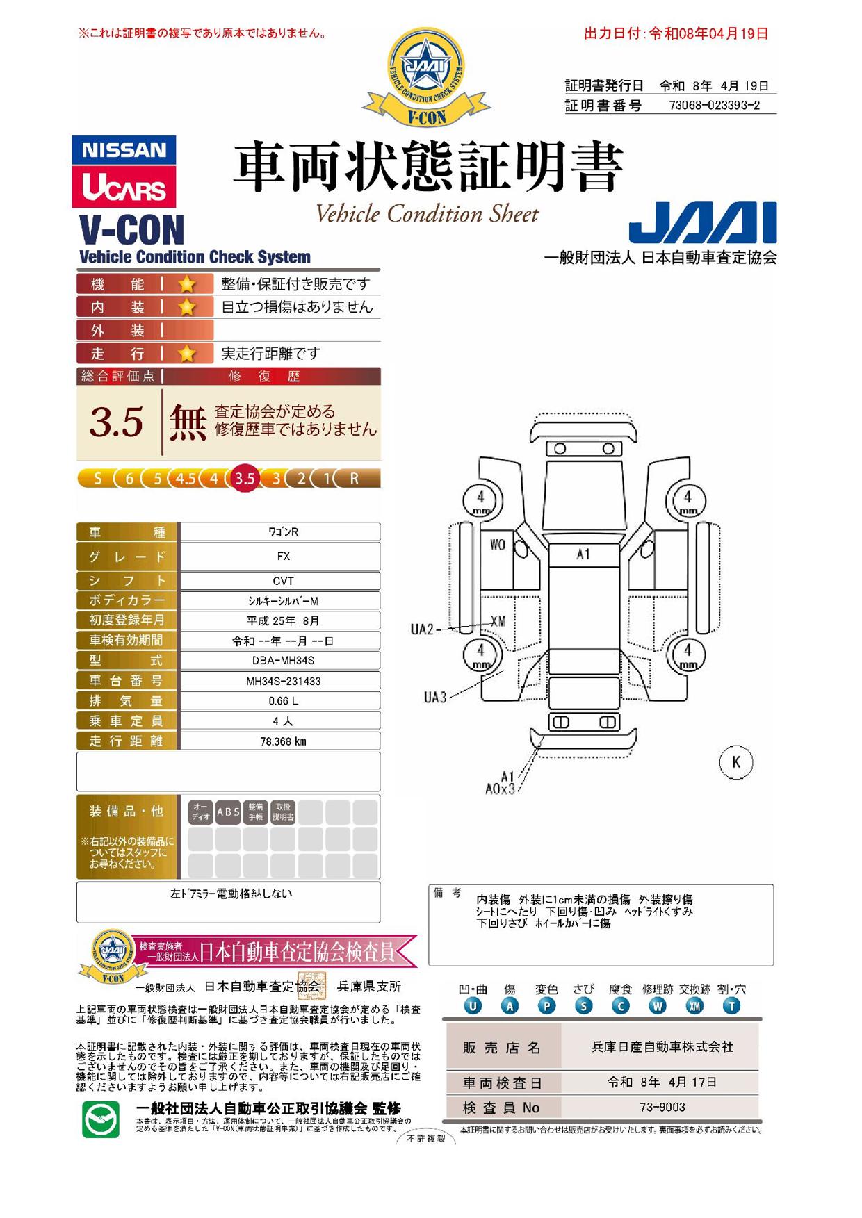 現状括弧書き内の年月まで車検有効期限が残っていますが、ご成約時に新しく車検を取り直します。なお取り直しの費用は車両価格に含まれています。