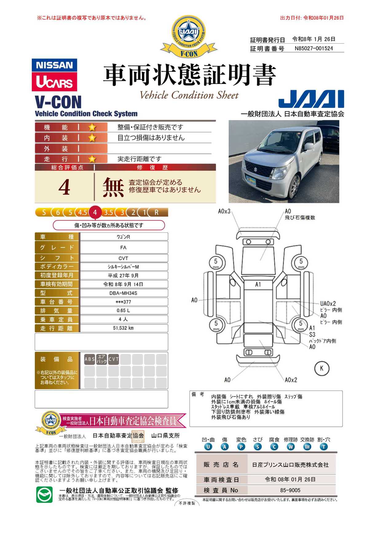 現状括弧書き内の年月まで車検有効期限が残っていますが、ご成約時に新しく車検を取り直します。なお取り直しの費用は車両価格に含まれています。