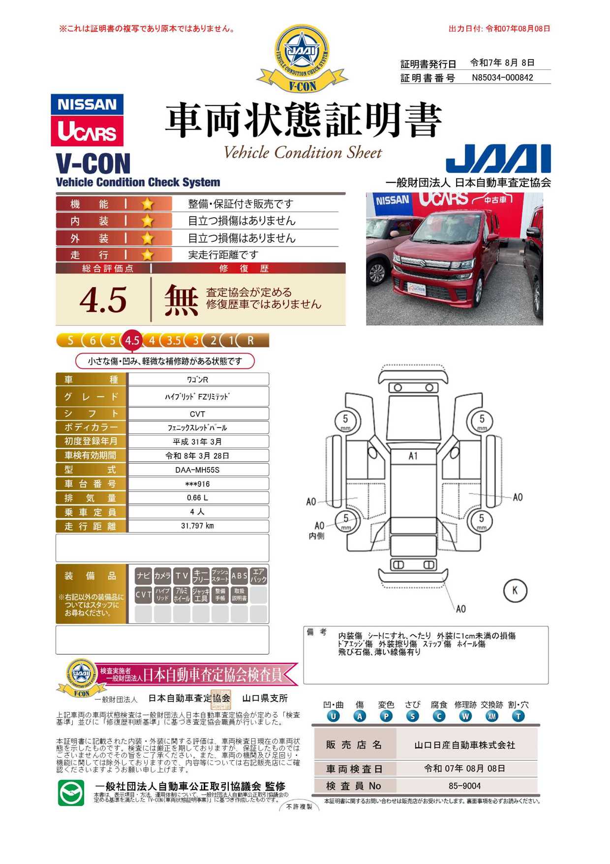 車両状態証明書を見る