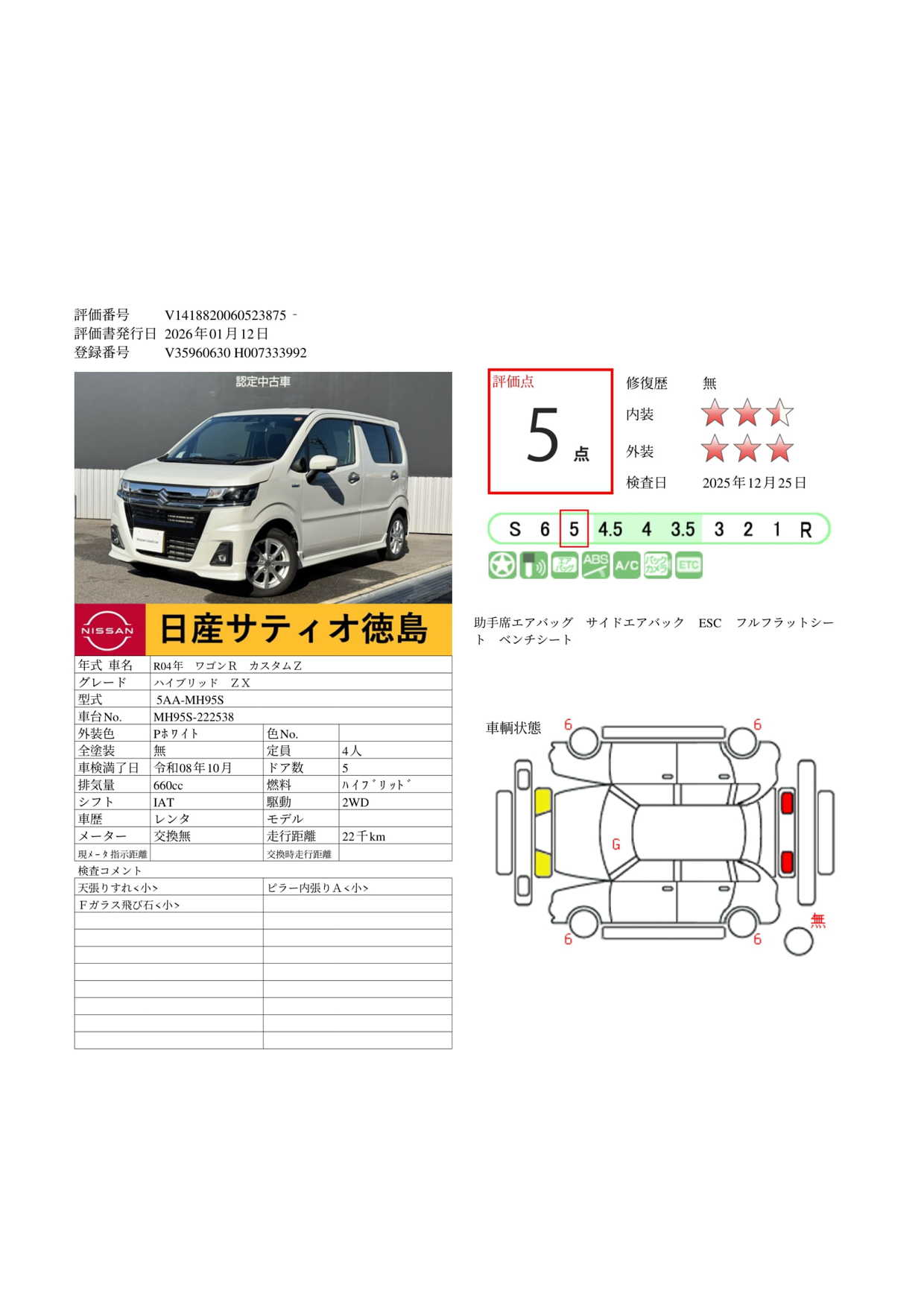 評価点イメージ : 走行距離5万kmまで内外装がとてもきれいな状態です。