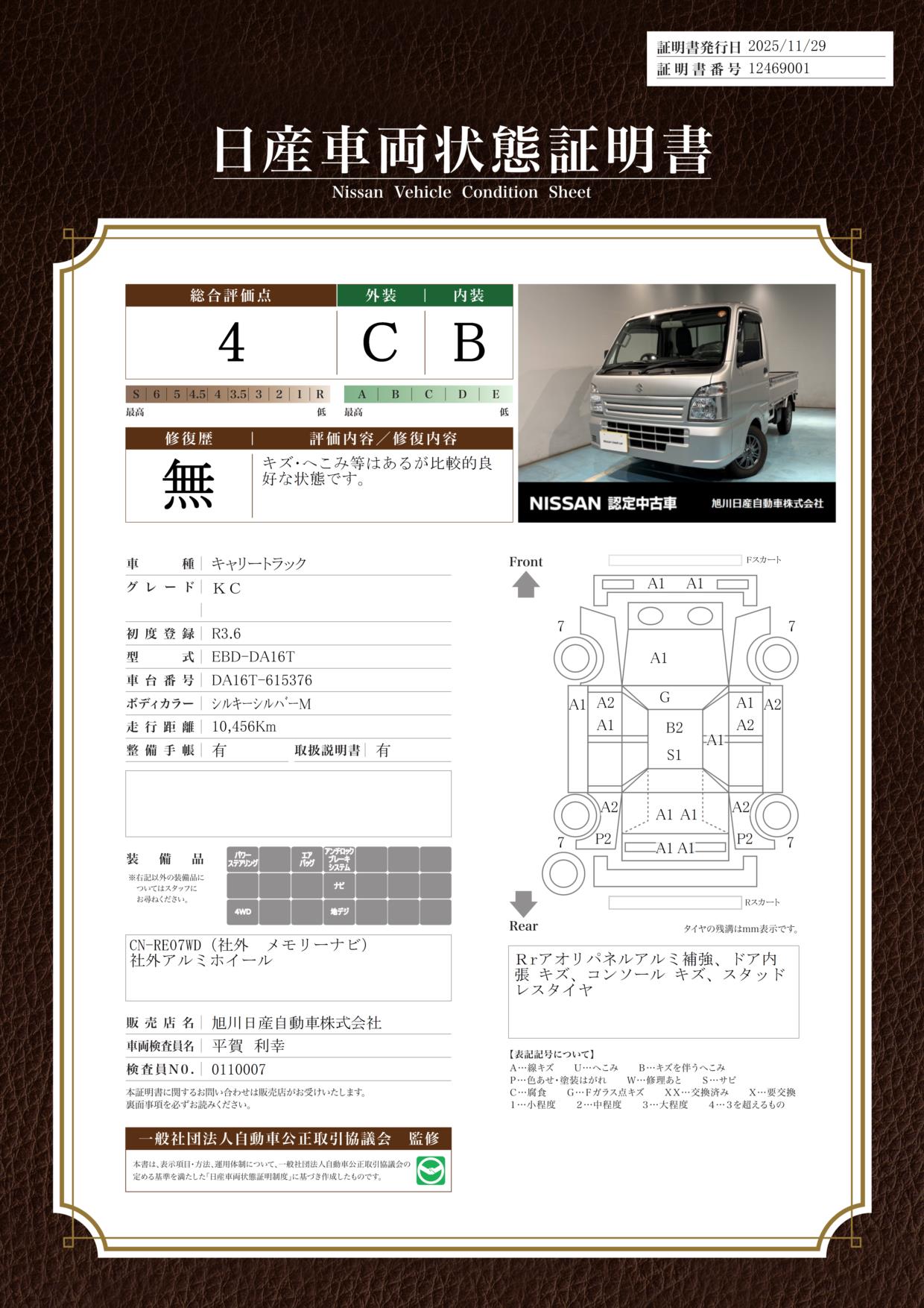 キャリイ 660cc 660 KC エアコン・パワステ 農繁仕様 3方開 4WD メモリーナビ