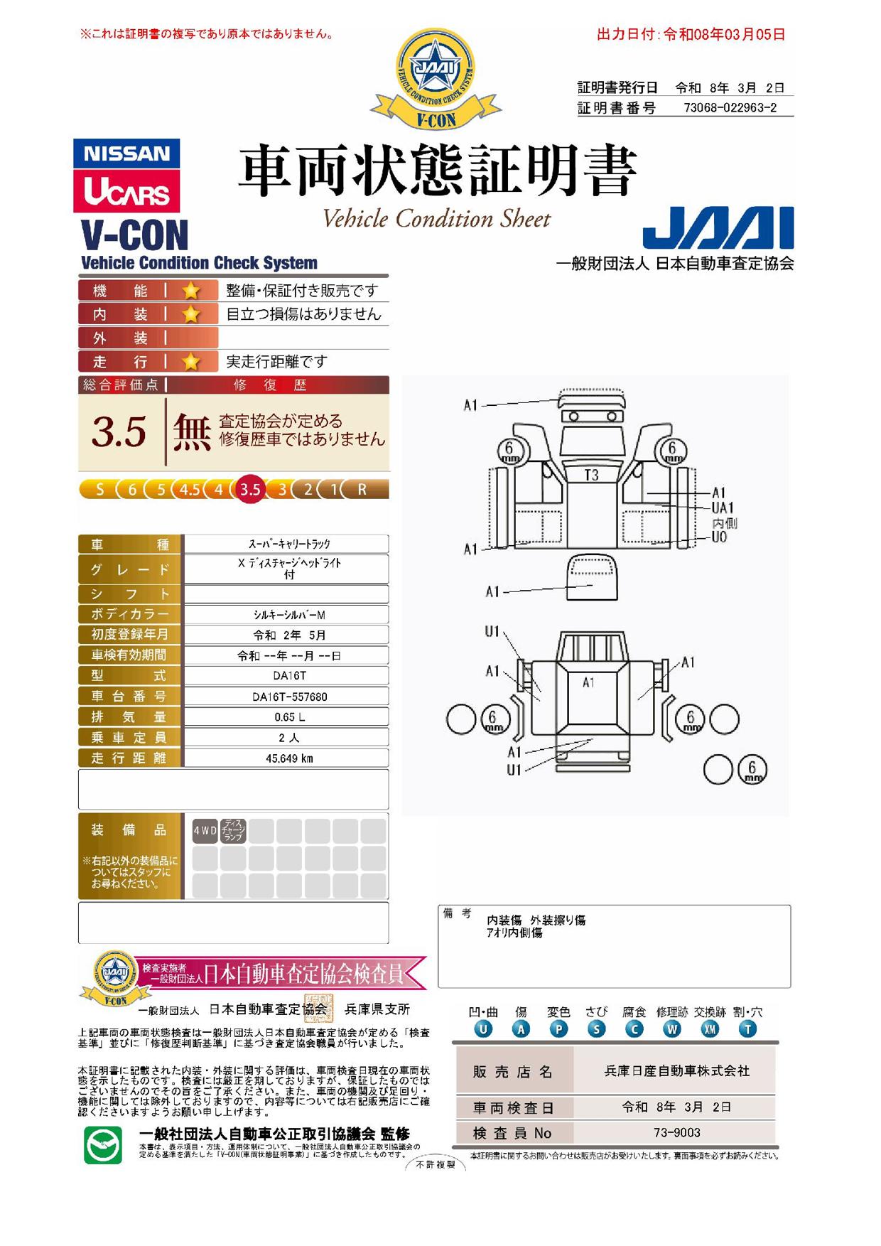 現状括弧書き内の年月まで車検有効期限が残っていますが、ご成約時に新しく車検を取り直します。なお取り直しの費用は車両価格に含まれています。