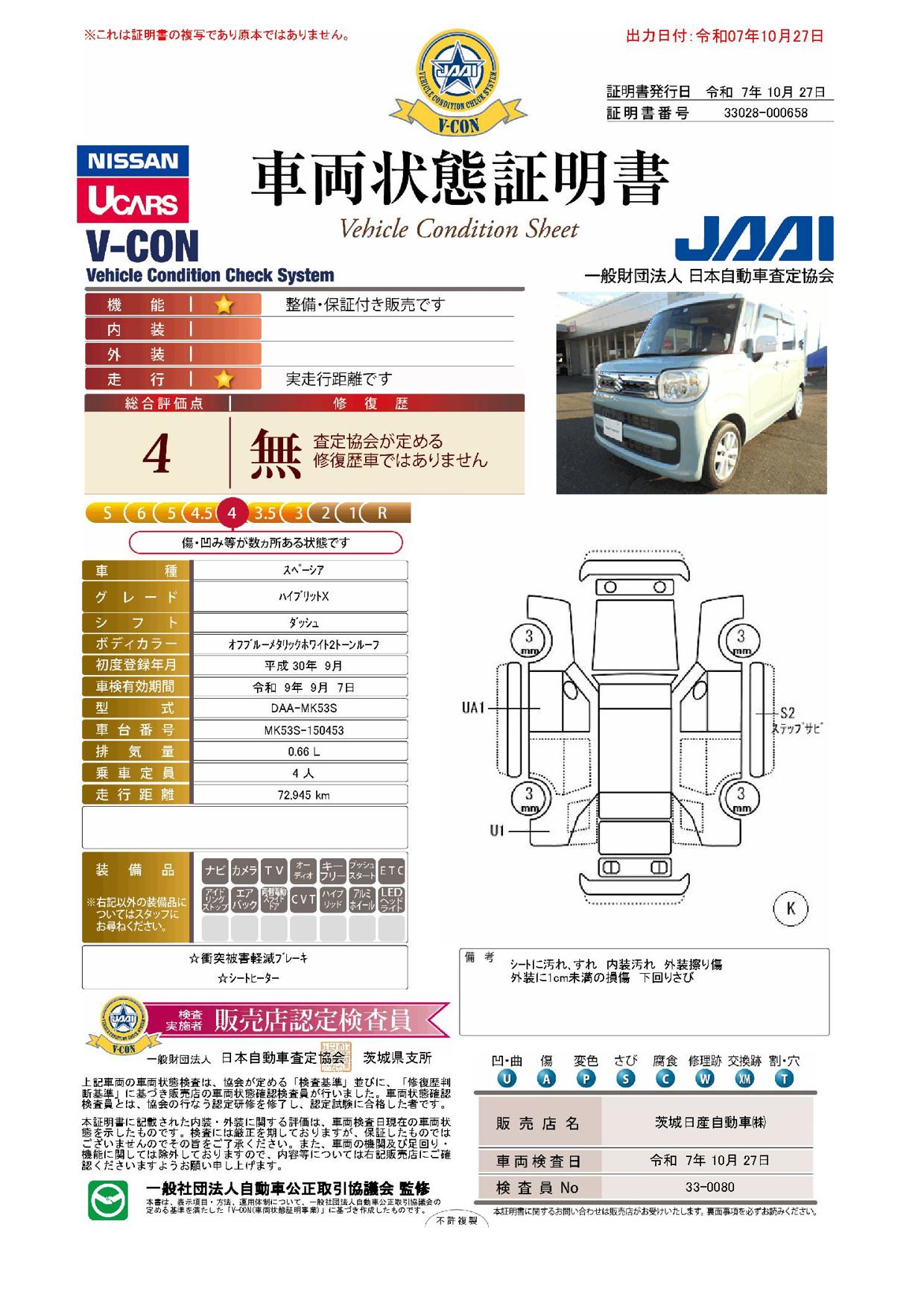 スペーシア 660cc 660 ハイブリッド X メモリーナビ バックモニター