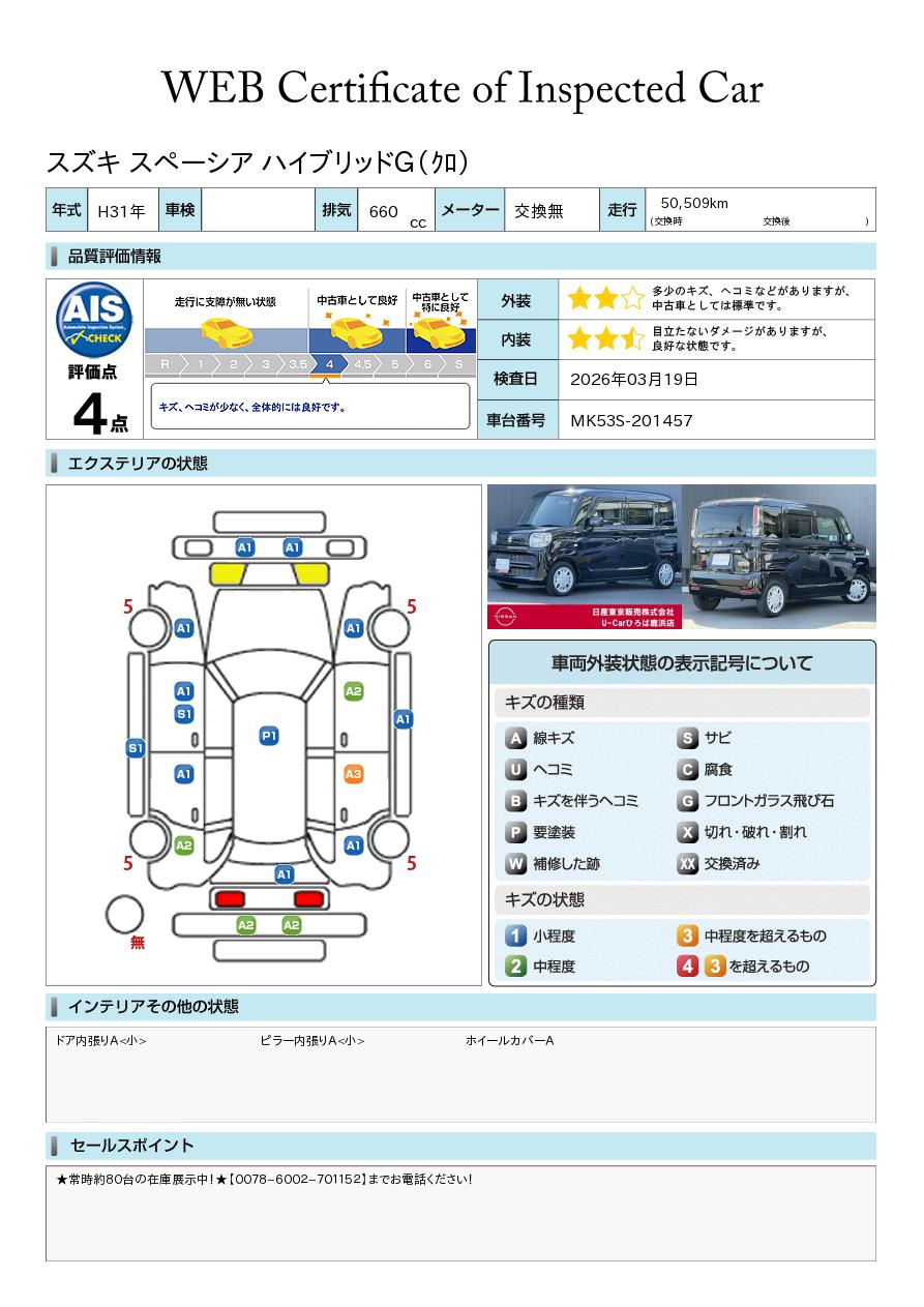 納車時に定期点検整備(費用は車両価格に含まれます。)