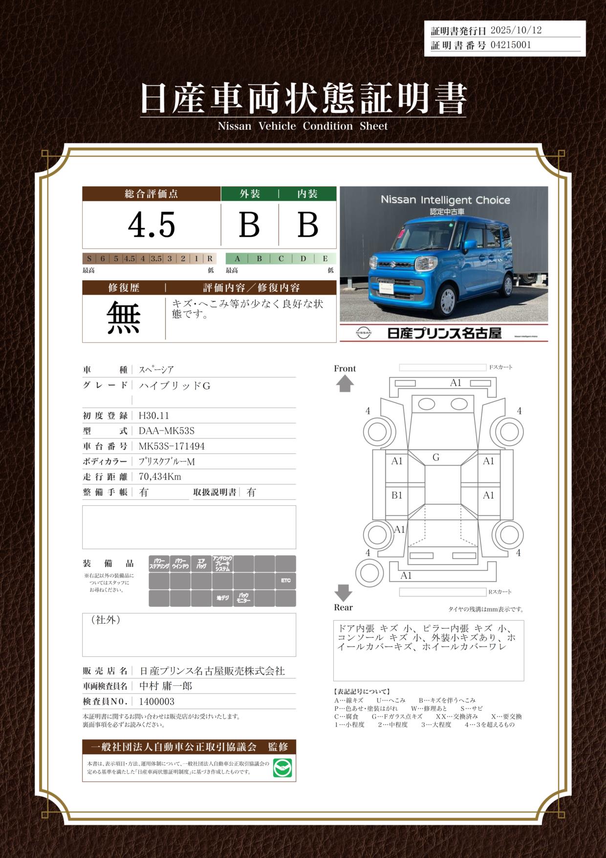 現状括弧書き内の年月まで車検有効期限が残っていますが、ご成約時に新しく車検を取り直します。なお取り直しの費用は車両価格に含まれています。