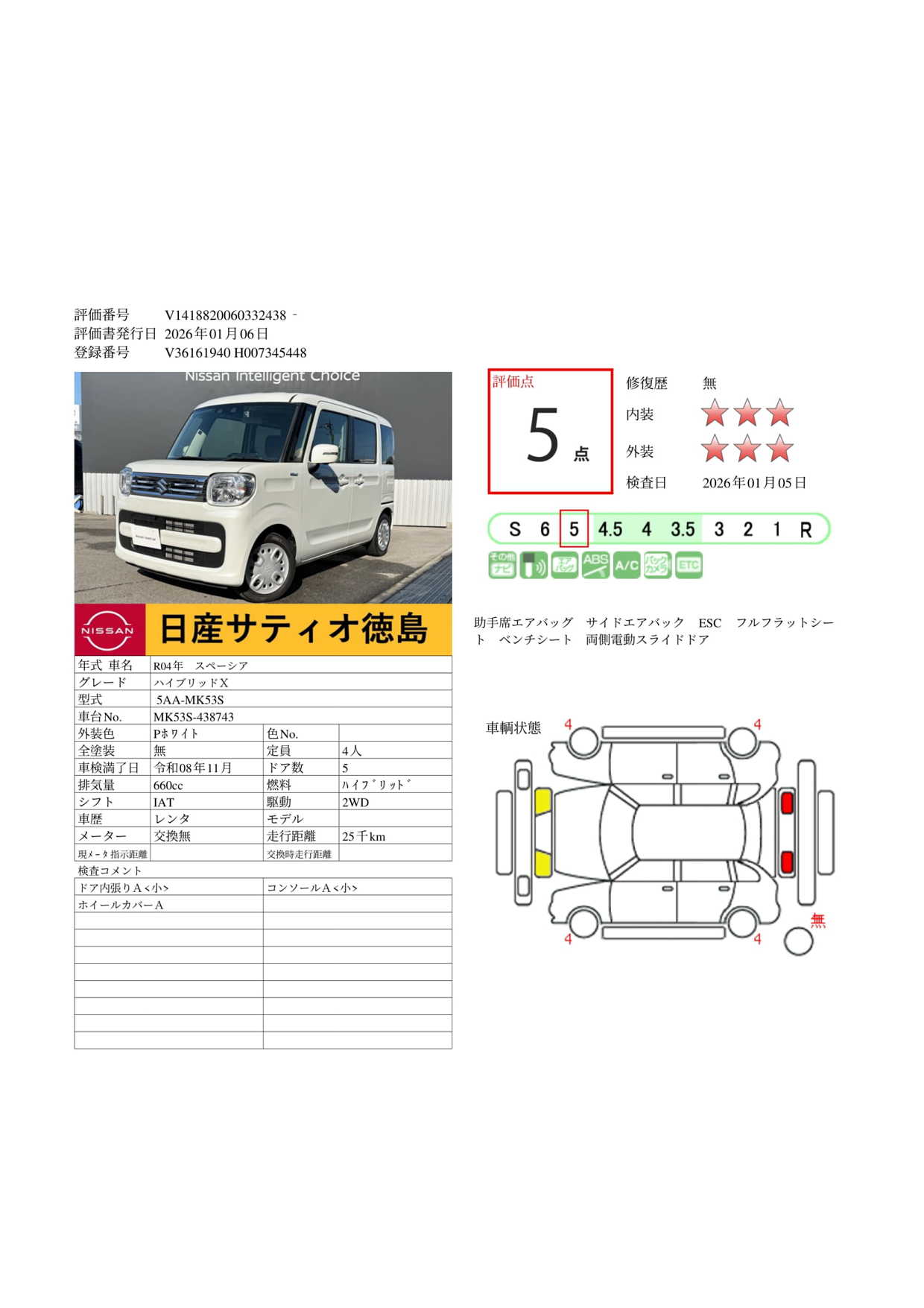 現状括弧書き内の年月まで車検有効期限が残っていますが、ご成約時に新しく車検を取り直します。なお取り直しの費用は車両価格に含まれています。