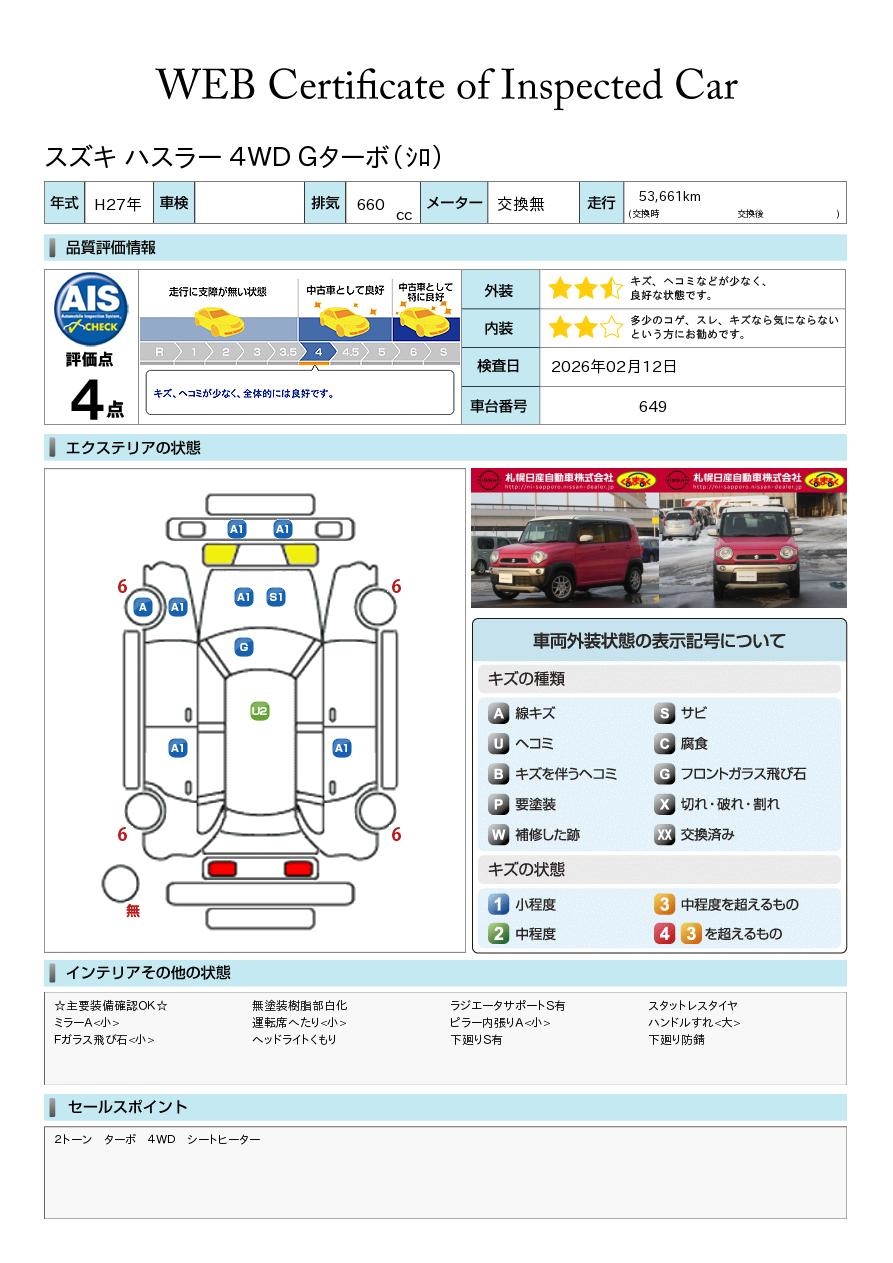 ハスラー 660cc 660 タフワイルド 4WD デュアルカメラブレーキサポート