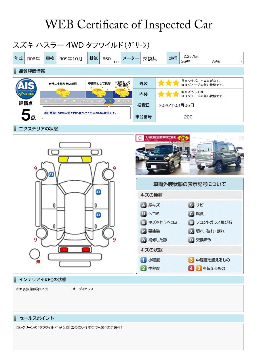 渋いグリーンの”タフワイルド”が入荷!雪の深い住宅街でも楽々の走破性!メーカー保証継承実施・オプション類別途相談承ります!