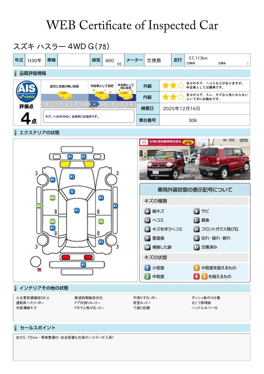 ハスラー 660cc 660 G 4WD 衝突被害軽減ブレーキ シートヒーター